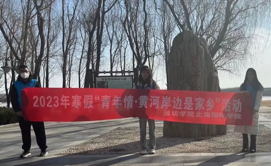 为进一步学习贯彻习近平生态文明思想,提高大学生理论联系实际的能力,2023年2月1日,北海国际学院暖阳志愿者服务队之“巡护母亲河”团队的成员来到位于山东省东营市的黄河三角洲国家地质公园,开展“青年情,黄河岸边是家乡——巡护母亲河,青春在行动”寒假社会实践活动。