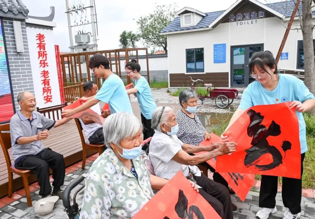 最“美”书画,“艺”起“返家乡”是依托我院优秀志愿服务队——“七色花”大学生志愿者服务队开展的大学生“返家乡”社会实践项目。多年来,服务队积极响应团中央、团省委等各级团组织的号召,一批批大学生志愿者,胸有大志、心有大我、肩有大任,积极投身于寒暑期“三下乡”社会实践中去,以坚定的脚步丈量祖国大地,把爱国情、强国志、报国行自觉融入新时代新征程,以挺膺担当的青春奋斗姿态践行了当代大学生的使命和担当。在2023年寒假社会实践中,积极克服疫情等不利因素,在风格各异、内容丰富的书画作品中,在万家团圆、和和美美、喜气洋洋的年味中,人民群众感受到了艺术作品的魅力,更感受到了“山河无恙,国泰民安”的自豪感、幸福感。