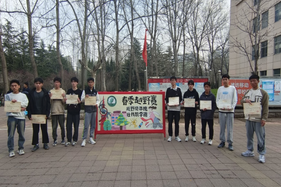 本次春季越野赛规划路线为沿校园外环,从人合楼出发,经过潍坊学院南门、操场、小北门后回至人合楼。本次春季越野赛男子路程为六千米,女子路程为三千米。比赛开始前各位同学前往八号楼进行登记,并进行热身活动。在裁判鸣枪示意后,各位选手冲出起跑线、奋勇争先,挥舞着充满力量的双臂开始了征程。在比赛过程中,同学们在规定路线进行比赛,在途中的两处签到点以领取小红条的方式进行签到。参赛同学们不甘落后、坚持不懈、持之以恒,冲向终点线。最终,参赛选手们全部顺利跑完全程路线,同时,数学院向男、女前十名的同学颁发奖状已与鼓励。