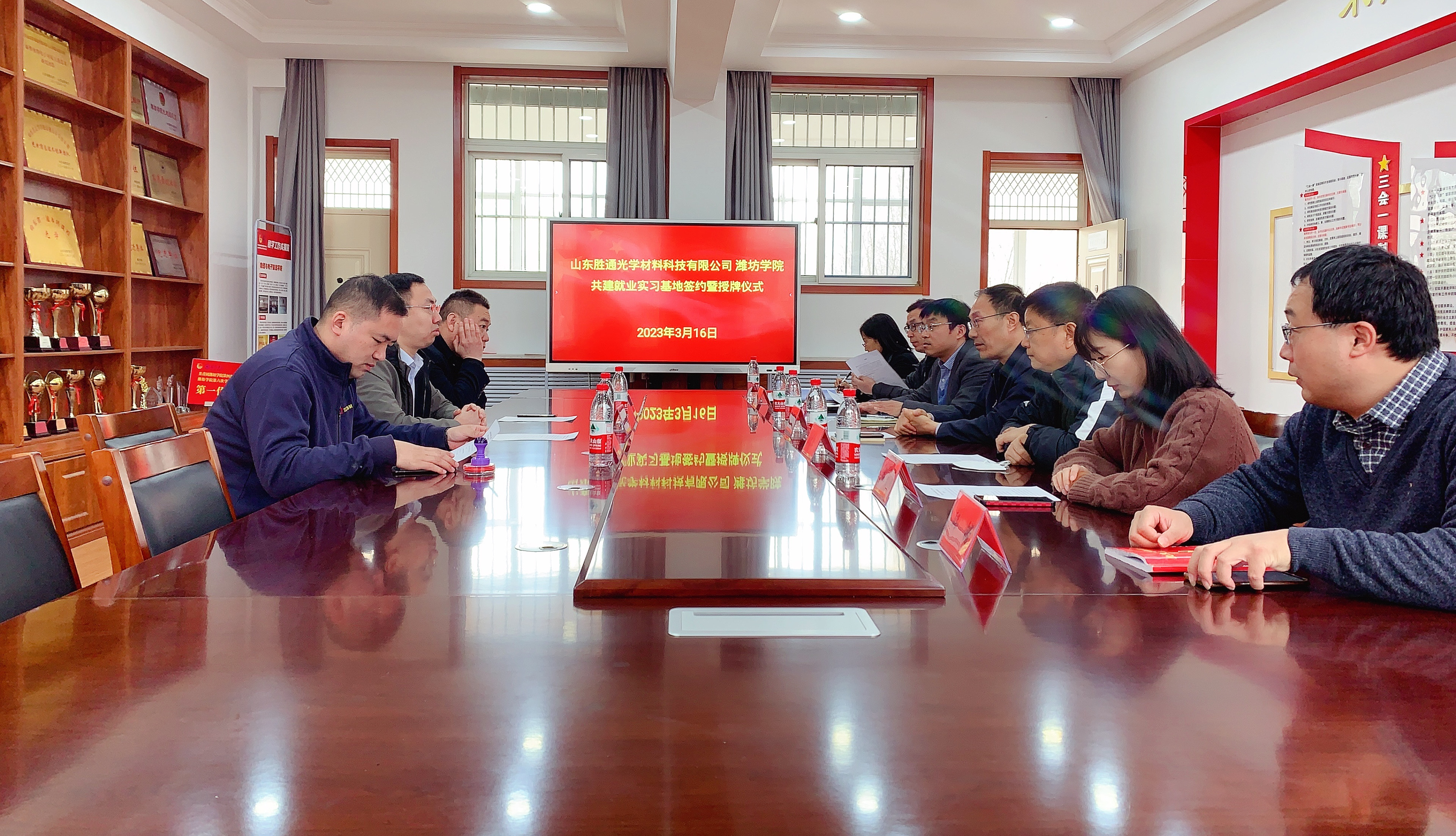 为拓宽学生就业渠道,深挖企业岗位资源,促进毕业生高质量就业,3月16日上午,山东胜通光学材料科技有限公司副总经理杨建鹏一行三人受邀到我院洽谈共建大学生就业实习基地事宜。学院党总支委员、两办主任、毕业班辅导员参会。