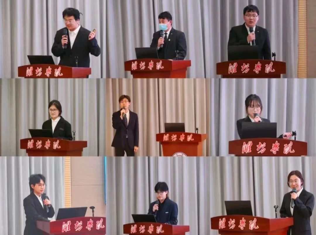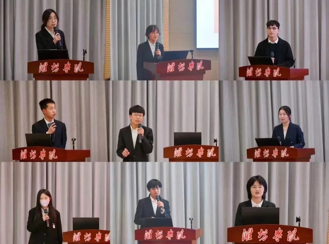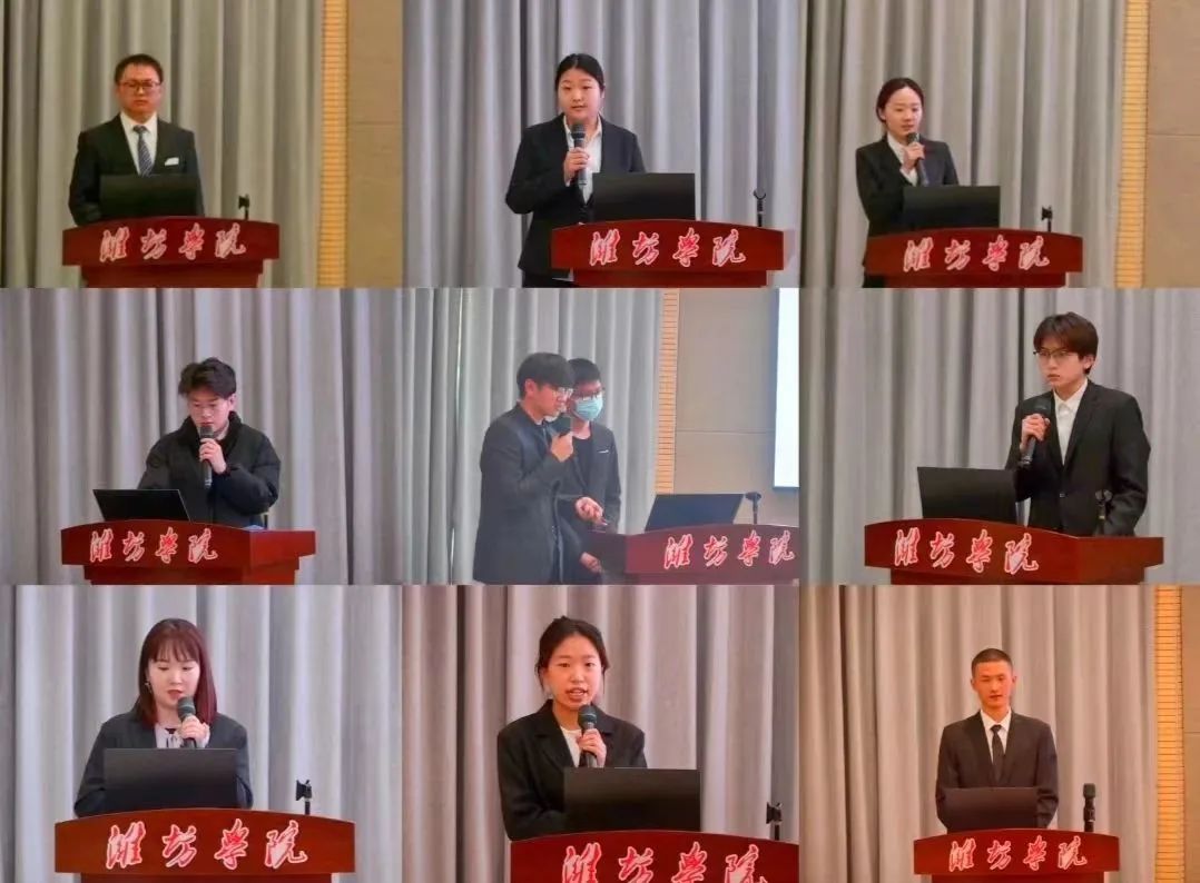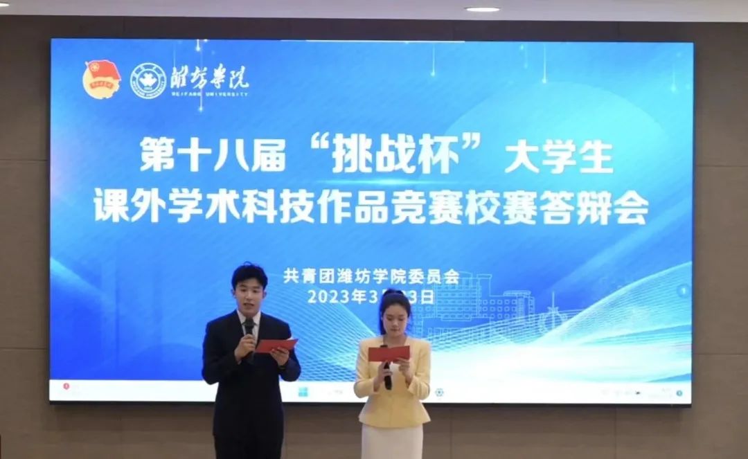 为深入贯彻落实党的二十大精神,进一步引导和鼓励青年学生培养科学精神和科学态度,促进我校学生课外学术科技活动蓬勃开展,积极选拔优秀作品参加全省、全国竞赛,3月23日下午,第十八届“挑战杯”大学生课外学术科技作品竞赛潍坊学院校赛答辩会在知新楼二楼报告厅举行。学校团委书记徐加金、团委副书记江浩浩、相关二级学院团总支书记(副书记)、指导老师及学生代表等100余人到场观摩。