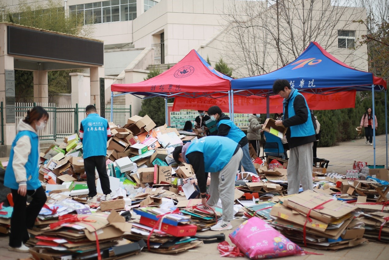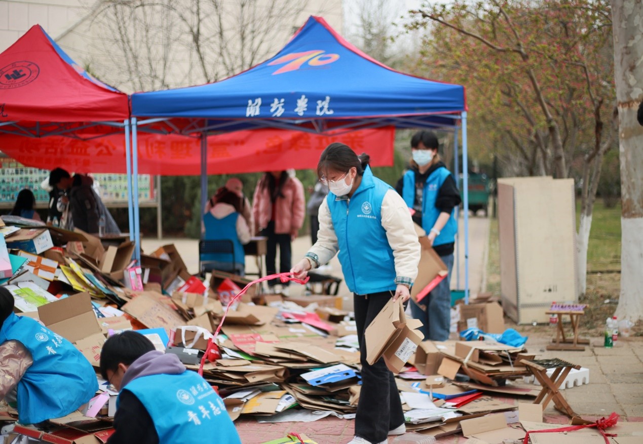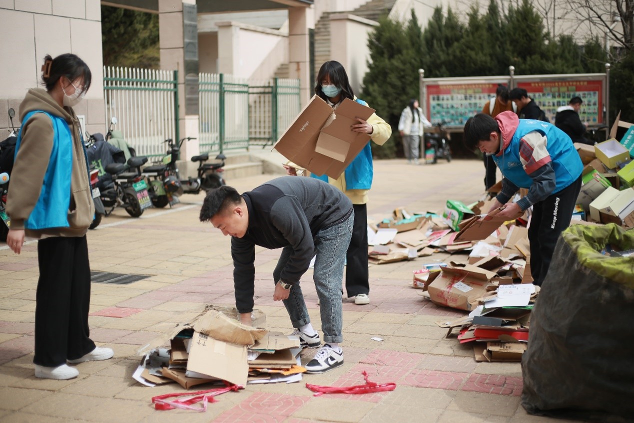 为增强同学们环保意识,引领大学生弘扬雷锋精神,深刻把握新时代学雷锋志愿服务的思想内涵和实践要求,2023年3月25日,物电学院“量子”志愿服务队在明正楼前开展以“亲近绿色,‘盒’理环保”为主题的纸箱捐赠公益活动。