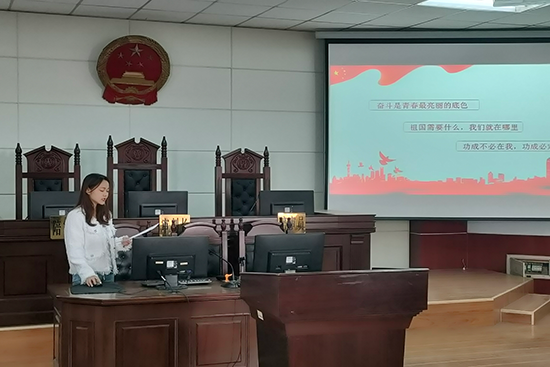 3月27日上午,学校党的二十大精神青年宣讲团走进政法学院,以“学习二十大,永远跟党走,奋进新征程”为主题开展宣讲。建筑工程学院团总支副书记马俊原、青年教师韩锴、学生骨干赵桂彬以及政法学院“青马工程”学员代表武冠君作为宣讲团成员参加活动,2020级法学专业四班团支部全体学生现场聆听。