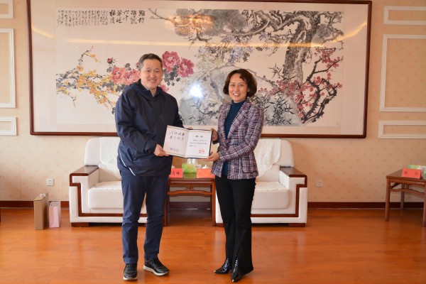 徐梅在五楼接待室会见了王清林一行,对王清林回到母校表示欢迎和感谢,介绍了学校毕业生就业创业的基本情况,并为王清林颁发了潍坊学院大学生创新创业导师聘书,希望在后续加强联系、加强合作,为学校事业高质量发展凝聚更多校友智慧和力量。