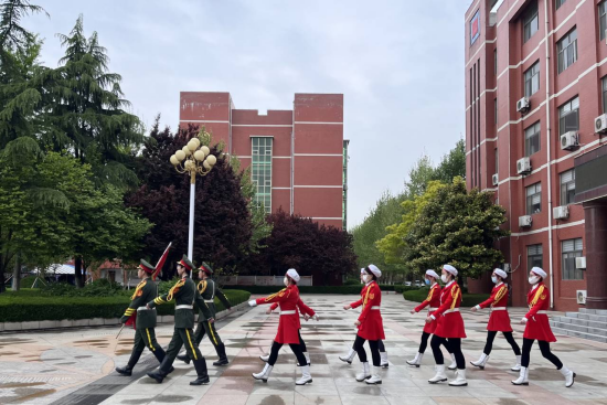 阳光洒满大地,春风拂过面颊,伴随着一声响亮的“出旗”,国旗护卫队迈着铿锵有力的步伐,以昂扬的姿态将国旗送上旗台。在动人心弦的国歌声中,他们振臂一挥,在全校师生的注目下,鲜艳的五星红旗缓缓升起,迎风飘扬。
