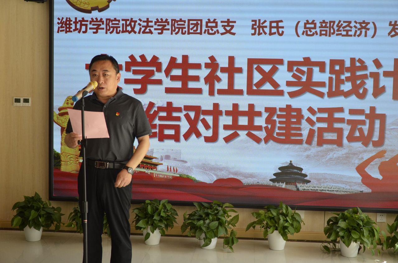 为深入贯彻落实党的二十大精神,落细落实“共青团促进大学生就业行动”,根据团省委《关于开展“百万大学生进社区”社会实践的工作方案》要求, 5月21日,政法学院与寒亭区张氏(总部经济)发展中心联合开展“百万大学生进社区”结对共建活动。我院党总支书记曹兴波,副书记刘伟,团总支书记宋薇,张氏(总部经济)发展中心党委书记陈秀新,党委委员、团委书记郭华出席活动,张氏(总部经济)发展中心党委副书记牟济宁主持活动。政法学院尚德志愿服务队参加此次活动。
