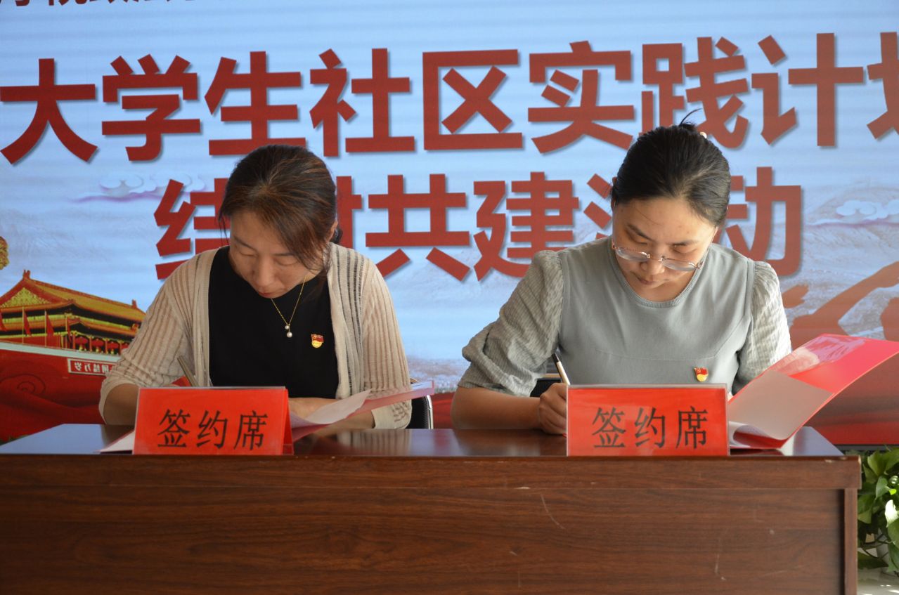 本次活动中,双方团组织负责人签署团组织结对共建协议书,张氏(总部经济)发展中心“大学生社区实践计划实践基地”揭牌成立,政法学院党总支书记曹兴波,张氏(总部经济)发展中心党委书记陈秀新,学生代表武冠君分别发言。签约仪式结束后,曹兴波一行参观了解了张氏街道社区一系列便民、利民的规划与设施建设,并表示对今后的大学生进社区实践合作充满了信心。