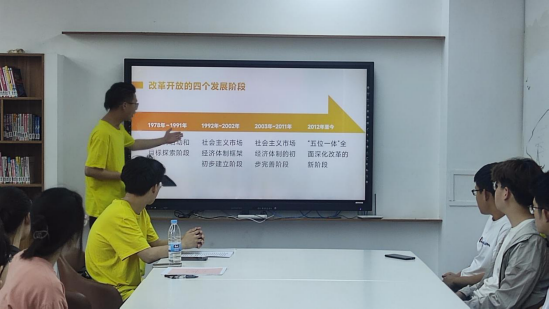 “芯”青年宣讲团成员孙浩以《从赤溪村近几年变化中看脱贫攻坚取得的成就》为题,从小处着手,通过讲述脱贫攻坚取得的成就,引领大家强化对伟大成就的感性认知,号召坚定不移听党话、跟党走,怀抱梦想又脚踏实地,为祖国的伟大复兴贡献出自己的青春力量。王博辉以《回望改革开放,铭记青年担当》为题,从改革开放的背景、四个发展阶段、五方面重大转变、改革开放取得的伟大成就等多个方面,引导大家深刻认识改革开放的历史意义和宝贵经验,学习中国共产党人敢想敢干、勇于拼搏的大无畏精神。