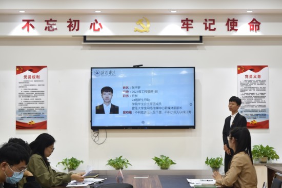 为规范落实国家奖学金、山东省政府奖学金评审工作,充分发挥榜样示范引领作用,促进学院良好学风建设,10月7日下午2时,建筑工程学院于致远楼6104会议室召开2022-2023学年国家奖学金、山东省政府奖学金答辩会,本次答辩会由张梦瑶老师主持,党总支副书记戴敏,团总支副书记马俊原,辅导员杨永武老师、杨宗祎老师,优秀学生代表参会。