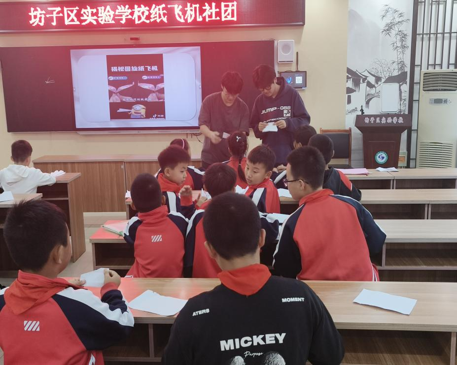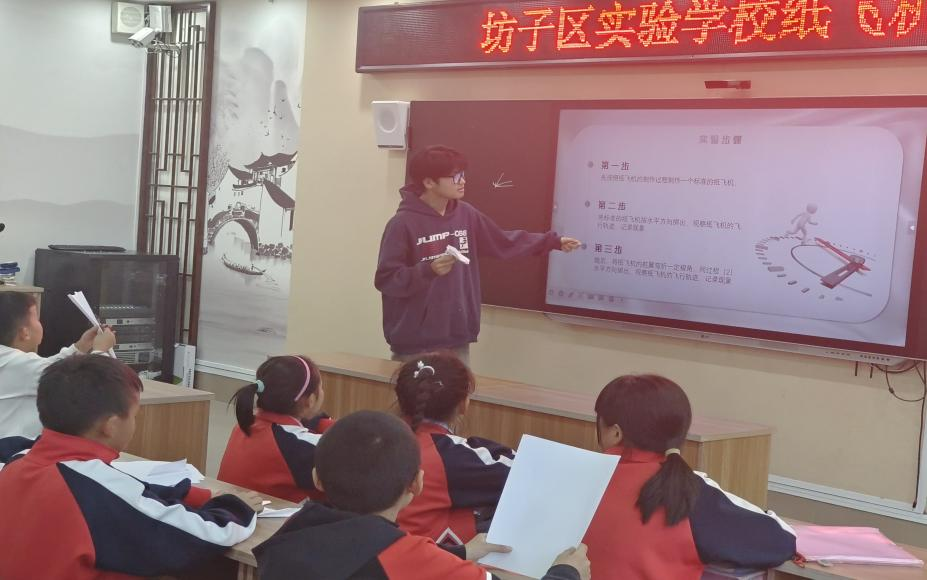 为了锻炼小学生们的创新实践能力,拓展知识面,潍坊学院“量子”志愿者服务队于10月27日赴潍坊市坊子区实验学校开展了一场别开生面的支教活动,通过理论与实践相结合的方式开展教学,支教活动让孩子们在动手制作纸飞机、放飞纸飞机的过程中体验了动手的快乐,激发了学习热情。