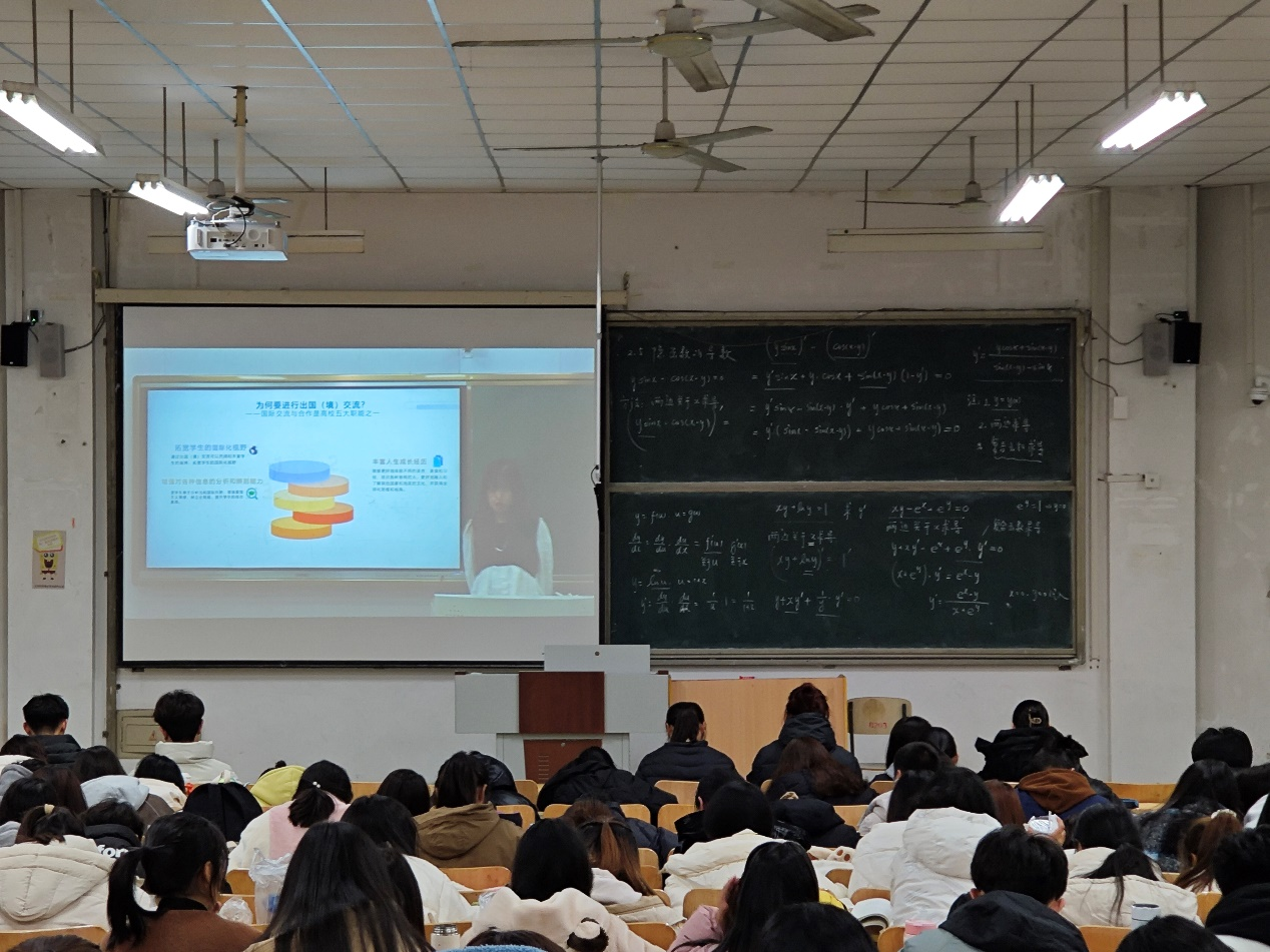 为推进数学与信息科学学院出国(境)交流项目工作的开展,数学院于11月14日为23级同学们放映由国际交流合作处发出的大学生国际视野拓展视频,为数学院新生普及我校出国出境交流项目相关信息。
