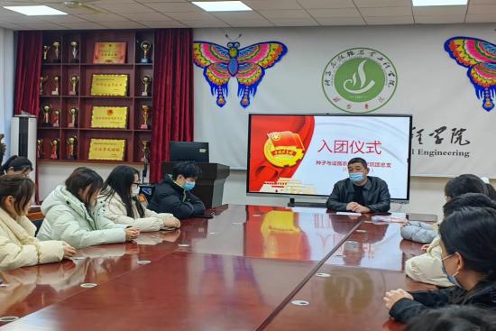 为深入贯彻党的二十大精神和共青团十九大精神,引领广大团员永远跟党走、共筑中国梦,切实增强团员的光荣感和使命感。12月12日,种子与设施农业工程学院举行了庄严的入团仪式,党总支副书记马荣舟、团总支书记张骞、2022级团支书以及12名新团员参加本次入团仪式。入团仪式在庄严的国歌声中拉开了序幕。伴随着慷慨激昂的旋律,全体师生起立,奏唱国歌。随后,由主持人宣读了本次入团成员名单,并向新团员颁发团章、团员证和团徽。之后,由杜奕菲同学带领新团员在鲜艳的团旗下,紧握右拳,庄严宣誓。铮铮誓言彰显着新时代青年奋发向上的精神面貌和建设新时代的昂扬斗志。然后,由优秀团员代表任晓珂发言,她认为青年意味着责任,入团则意味着带头尽责,希望大家能在共青团的带领下持续成长,持续进步。紧接着,新团员代表万文豪发言,他表示会时刻铭记“团结、进步、民主、科学”的团章精神,履行好团员的义务,继承并发扬共青团的优良传统,不断成长为有抱负、有担当、敢攀登的新时代农学人。最后,由马书记做出总结,他指出团员应积极参与团组织的活动,密切配合自己所在的支部开展好团的活动及一系列的工作,在平时的学习、生活和社会劳动中,时刻牢记自己是一名共青团员,按照团员标准严格要求自己。