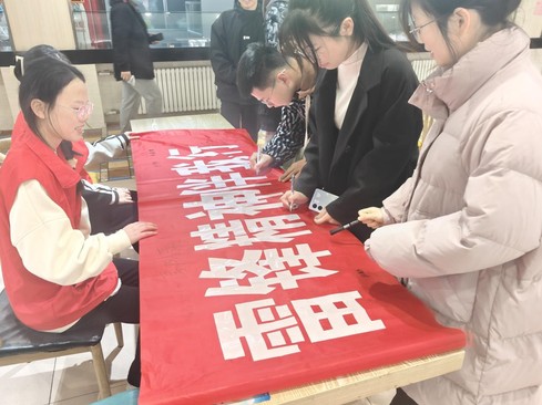 为深入学习雷锋精神,创建文明校园,3月17日上午,数学与统计学院“1+1”志愿服务队在学校第二餐厅前举行“三月春风暖人心,雷锋精神伴我行”横幅签名活动。
