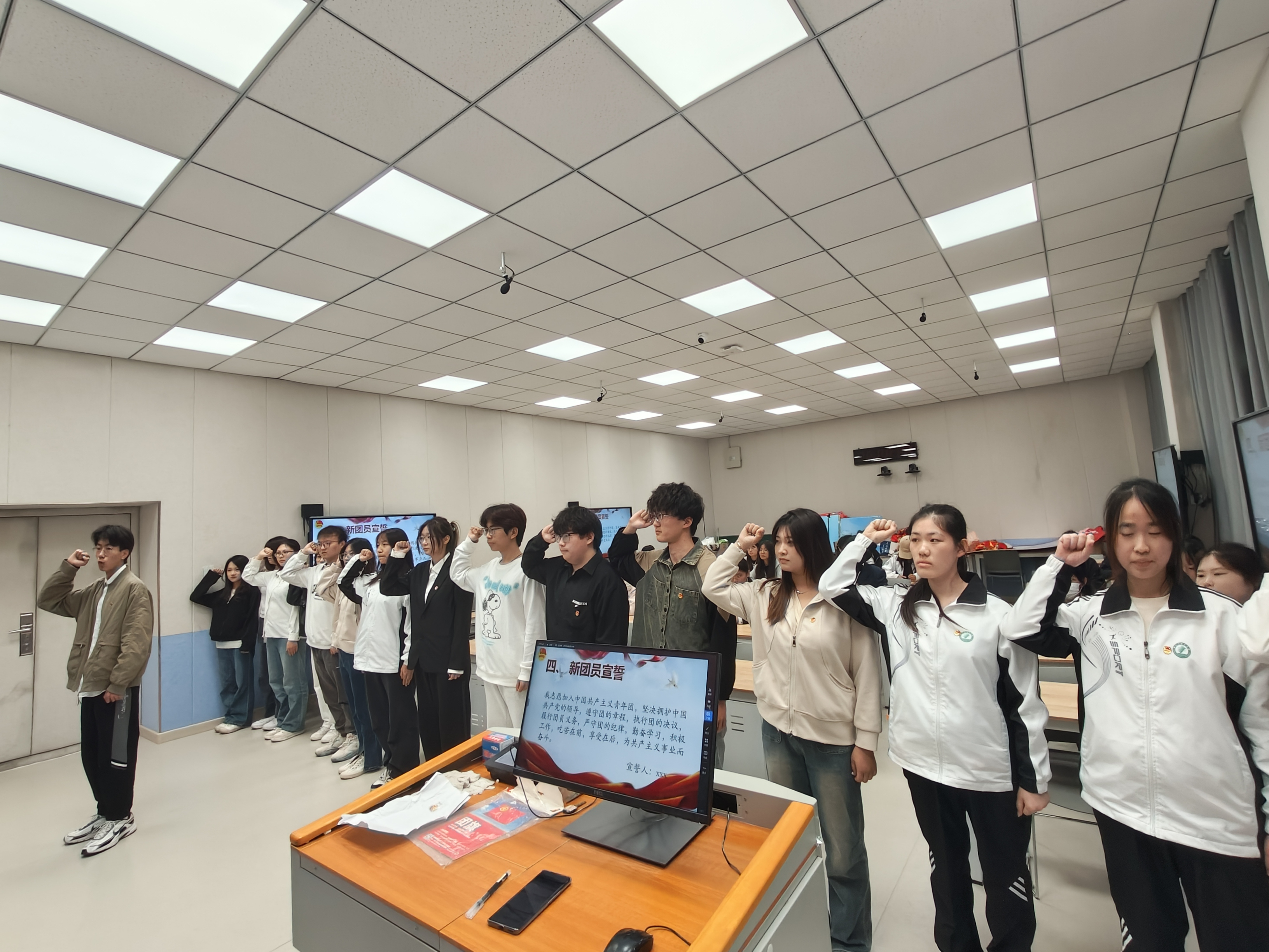 4月28日晚 ,数学与统计学院在数苑大讲堂举行了 2024 年上半年新发展团员入团仪式。团总支书记王鑫莉、各年级团支书以及新发展团员参加仪式。团总支学生副书记赵月琦主持。