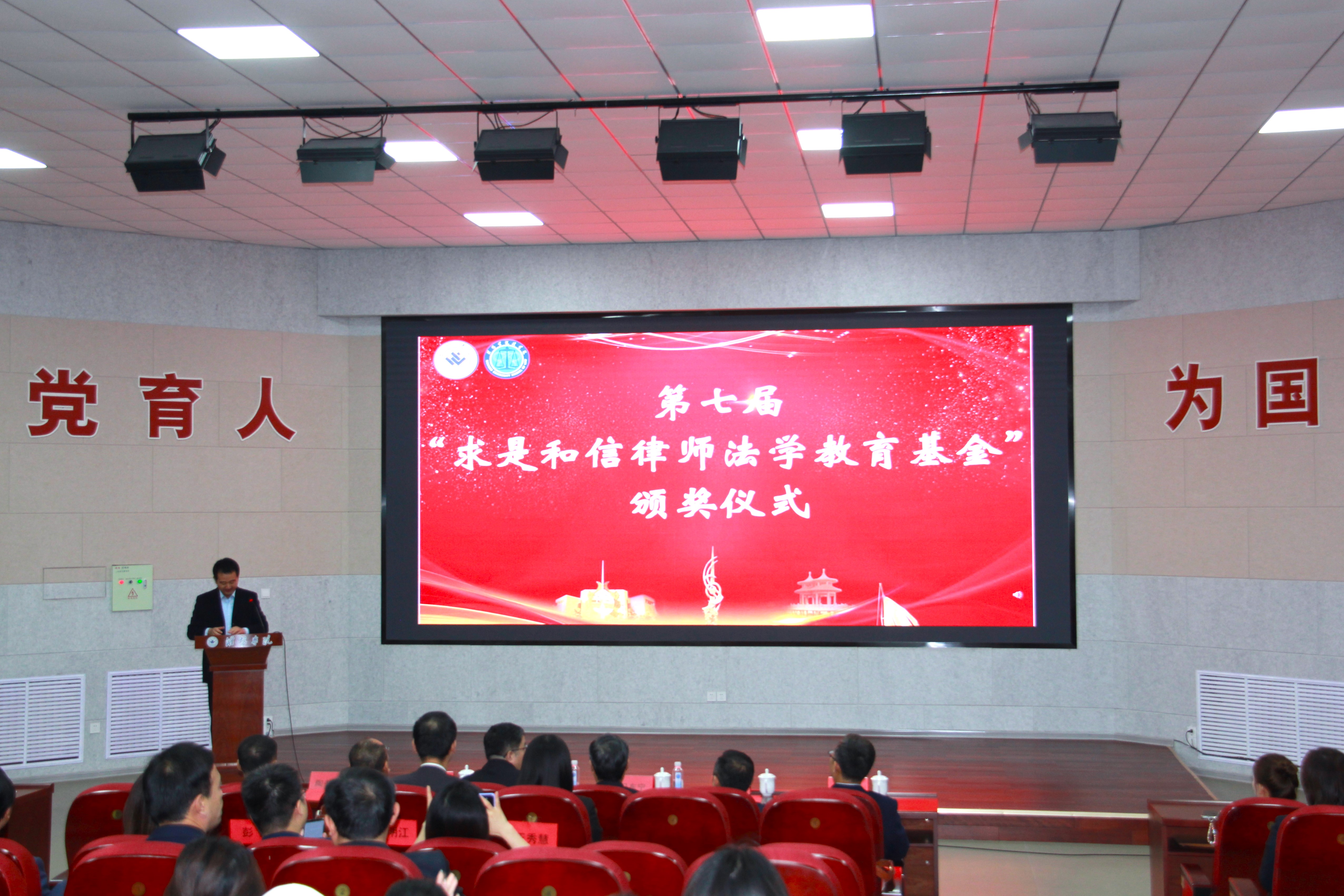 10月24日下午,第七届“求是和信律师法学教育基金”颁奖仪式在学校马克思主义学院学术报告厅举行,学校党委委员、副校长苗金春,山东求是和信律师事务所党支部书记、管理委员会主任马东宁,山东求是和信律师事务所党支部副书记、管理委员会副主任刘世伟,山东求是和信律师事务所管理委员会副主任陶书健,山东求是和信律师事务所管理委员会成员孙明江,学校学生工作处处长曹兴波,我院党委书记刘德才,我院党委副书记、院长杜立聪,我院党委副书记王秀慧,山东求是和信律师事务所律师代表和我院师生代表160余人参加。