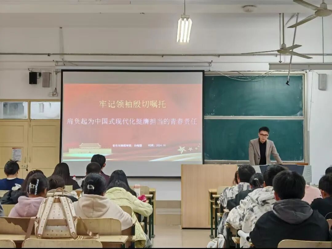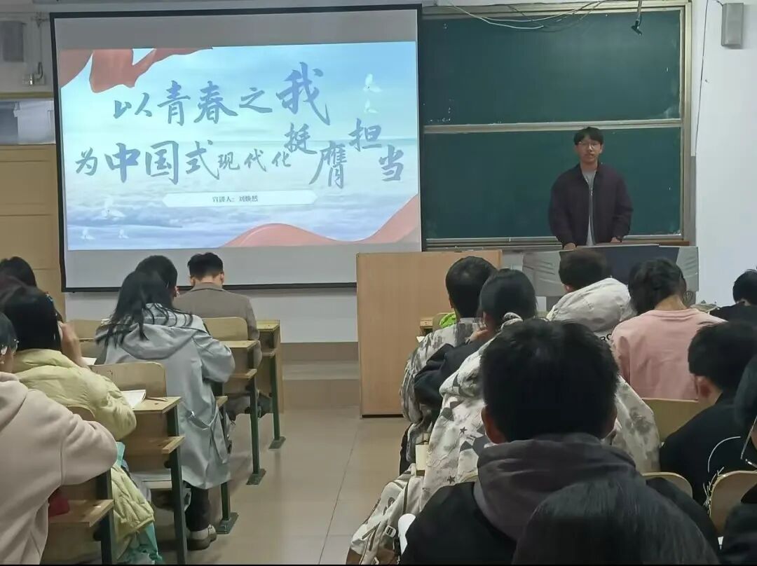 为深入学习宣传贯彻习近平新时代中国特色社会主义思想,10月31日下午,“潍”来之声青年宣讲团走进数学与统计学院,在8101开展宣讲活动。本次活动由校团委副书记孙楷强、现代农学院团委副书记李虹、机械与自动化学院2023级李焕然主讲,习近平新时代中国特色社会主义思想学习社成员、2024级新生代表参加活动。