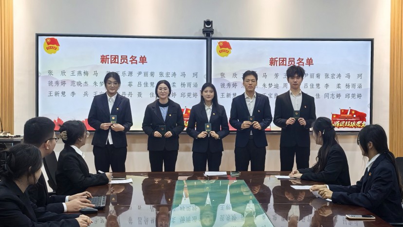 庄严的国歌奏响,全场肃立,入团仪式由此拉开序幕。首先团委组织宣传部部长王梓萌庄重宣读新发展团员名单,每一个名字都承载着希望与梦想。接着,学院团委负责人赵文婷老师为新团员颁发团员团徽、团员证,并亲自为他们佩戴,团徽在新团员的胸前闪耀,似星辰指引着前行的方向。