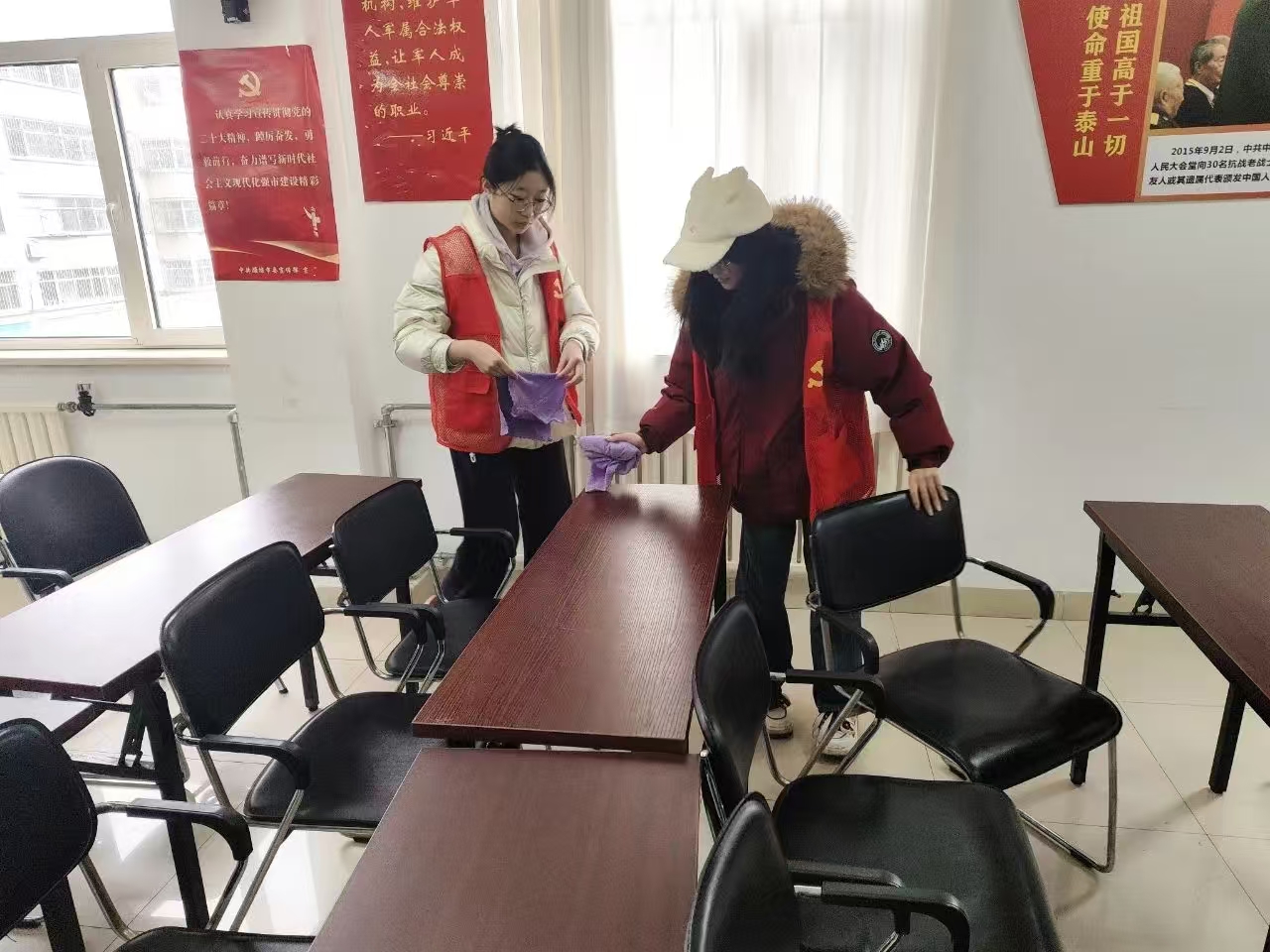 活动开展前,同学们进行了充分准备,明确分工,携带好清洁工具和宣传资料。到达东庄社区服务中心后,同学们迅速投入到卫生打扫工作中。有的负责清扫地面,有的擦拭桌椅,还有的清理窗户,大家干劲十足,不放过任何一个角落。在大家的努力下,服务中心的环境焕然一新,整洁明亮。