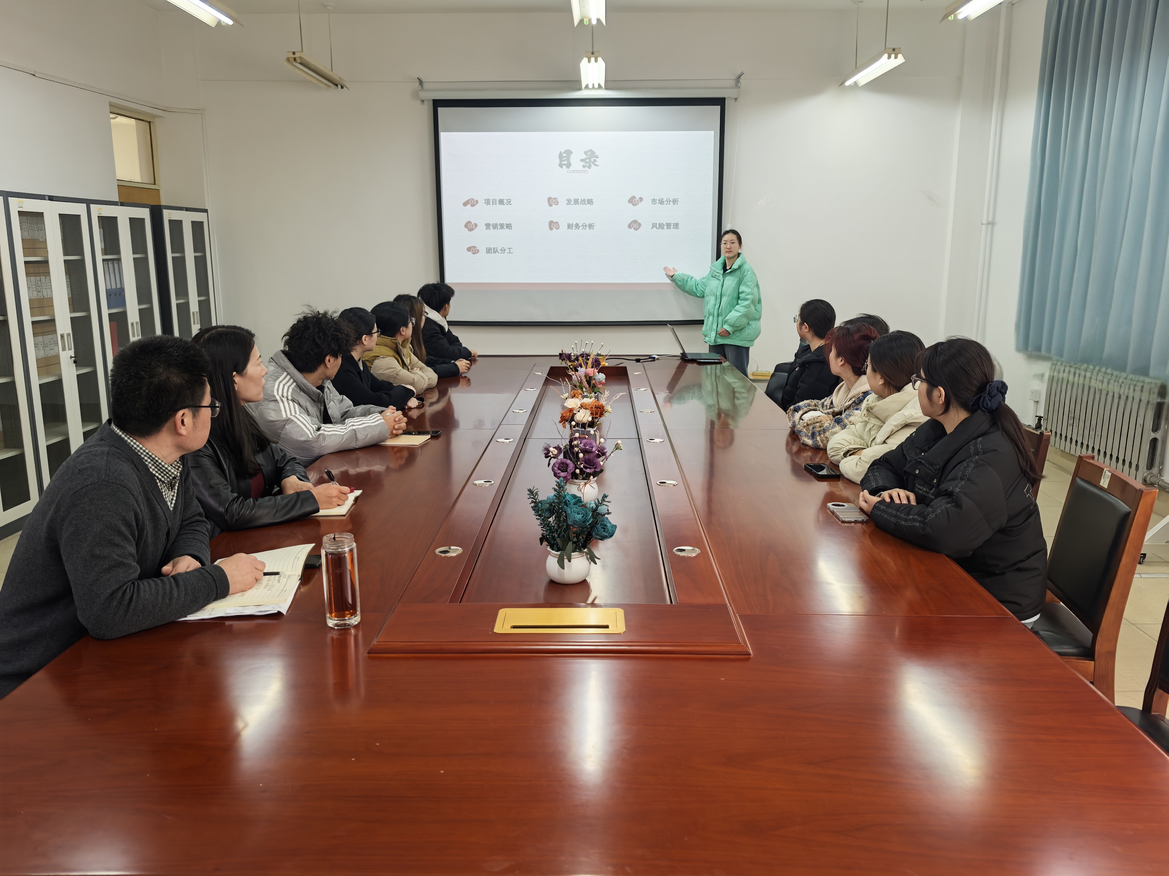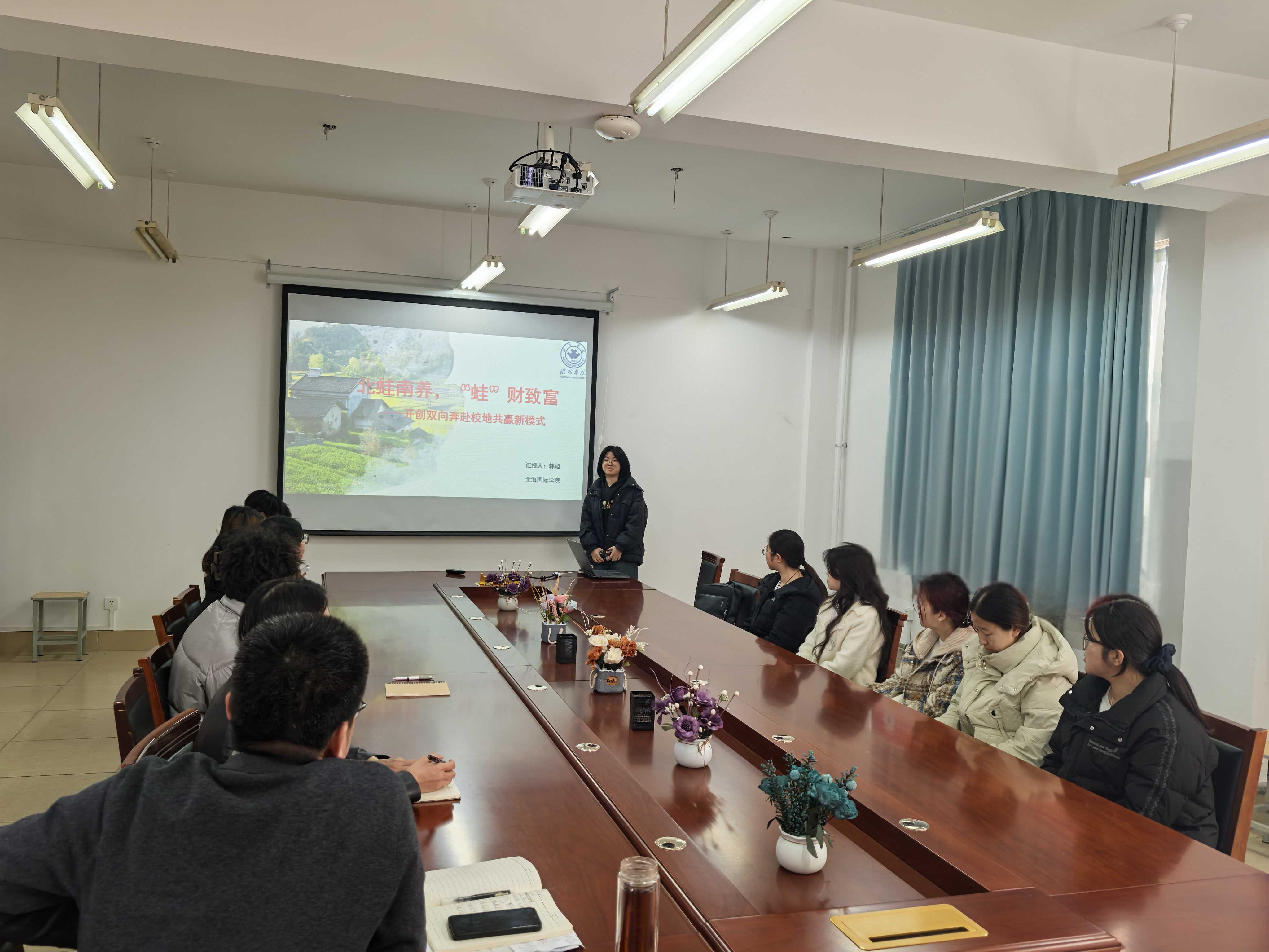 自比赛通知发布以来,北海国际学院积极响应学校要求,广泛宣传动员,吸引了众多学生参与。经过各班级精心准备和初选,有多个优秀项目脱颖而出,进入学院初赛。本次初赛共分为项目展示、选手答辩与评委点评三部分,作品涉及非物质文化遗产、医疗科技、可持续农业等多个领域。各参赛团队从项目背景、产品概述、商业策略、财务融资等方面对项目进行了详细的介绍。答辩过程中,选手们对老师提出的问题逐一回答,详细阐述项目设计思路和商业逻辑。随后,评委们为各组参赛选手提出了发展性建议和项目优化思路,并基于项目的科学性、先进性、实用性和现实意义,结合现场汇报和答辩情况进行了综合评价。