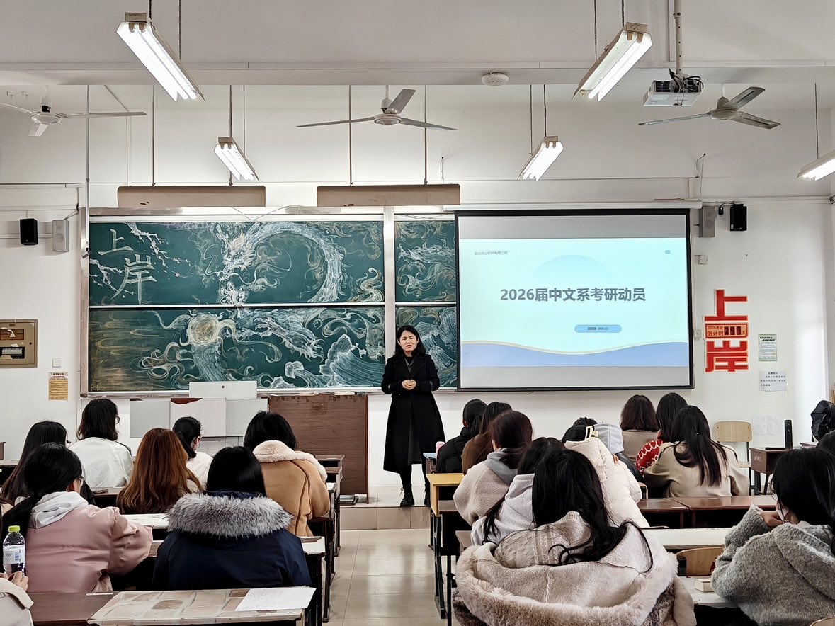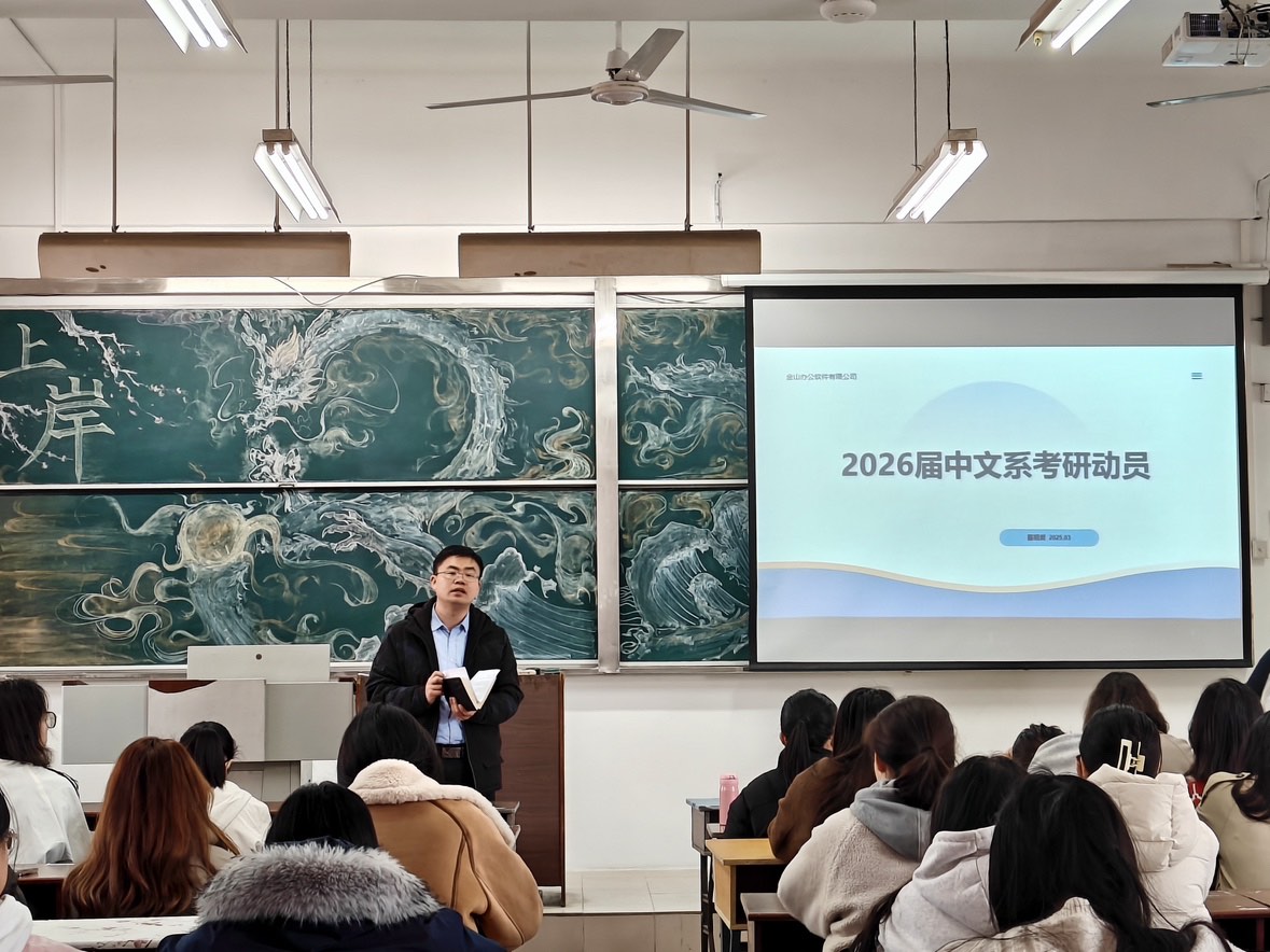 为助力考研学子科学规划备考路径,精准锚定院校专业,3月11日,文史学院(文化与旅游学院)中文系在致远楼6308教室召开2026届考研动员与经验分享交流会。会议由辅导员王涛主持,专业教师尹海燕、滕祖爱及2022级中文系全体考研学子参会。