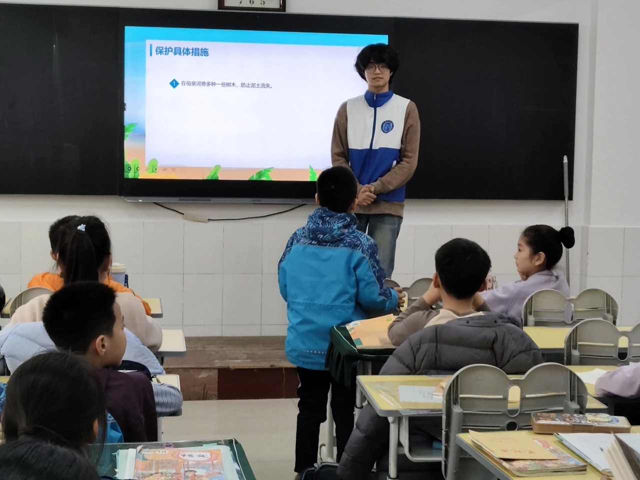 活动开场,志愿者们借助一系列生动有趣的图片和视频,展现了黄河雄浑壮美的自然风光,以及其在中华民族历史文化长河中的关键地位,瞬间吸引了孩子们的目光。紧接着,志愿者依据精心制作的课件,用通俗易懂的语言,向孩子们阐释了黄河当前面临的水土流失、水污染等生态挑战,清晰且深入地讲解了保护黄河的重要性与紧迫性。