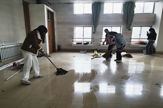 在二楼的闲置教室202里,郭萍让同学们分为三组,分别进行扫、倒、拖,将多年未启用的整个教室全部清扫干净。首先,清扫组的学生们对教室地面进行了全面细致的打扫,去除了积年的灰尘和杂物。随后,垃圾处理组的学生们将清理出的垃圾集中起来,并运送至图书馆外的垃圾桶,确保了教室环境的整洁。最后,地面拖洗组的学生们使用拖把和清水,对教室地面进行了彻底的清洁,使得整个教室焕然一新。