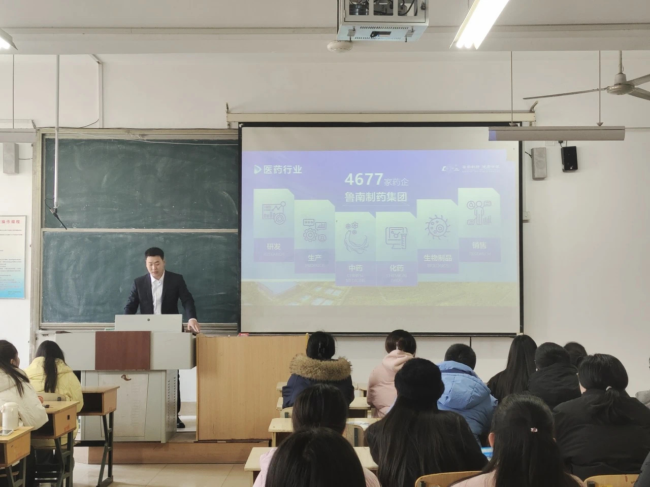 宣讲会上,作为一家集科研、生产、销售于一体的大型综合制药集团,鲁南制药招聘人员向同学们介绍了其在中药、化学药品、生物制品等领域的成就,详细讲解了公司的发展历程、企业文化以及各类岗位的需求,包括研发、生产质量、学术等多个类别,并对薪资待遇、福利政策等学生关心的问题进行了耐心解答,吸引了众多相关专业学生的目光。