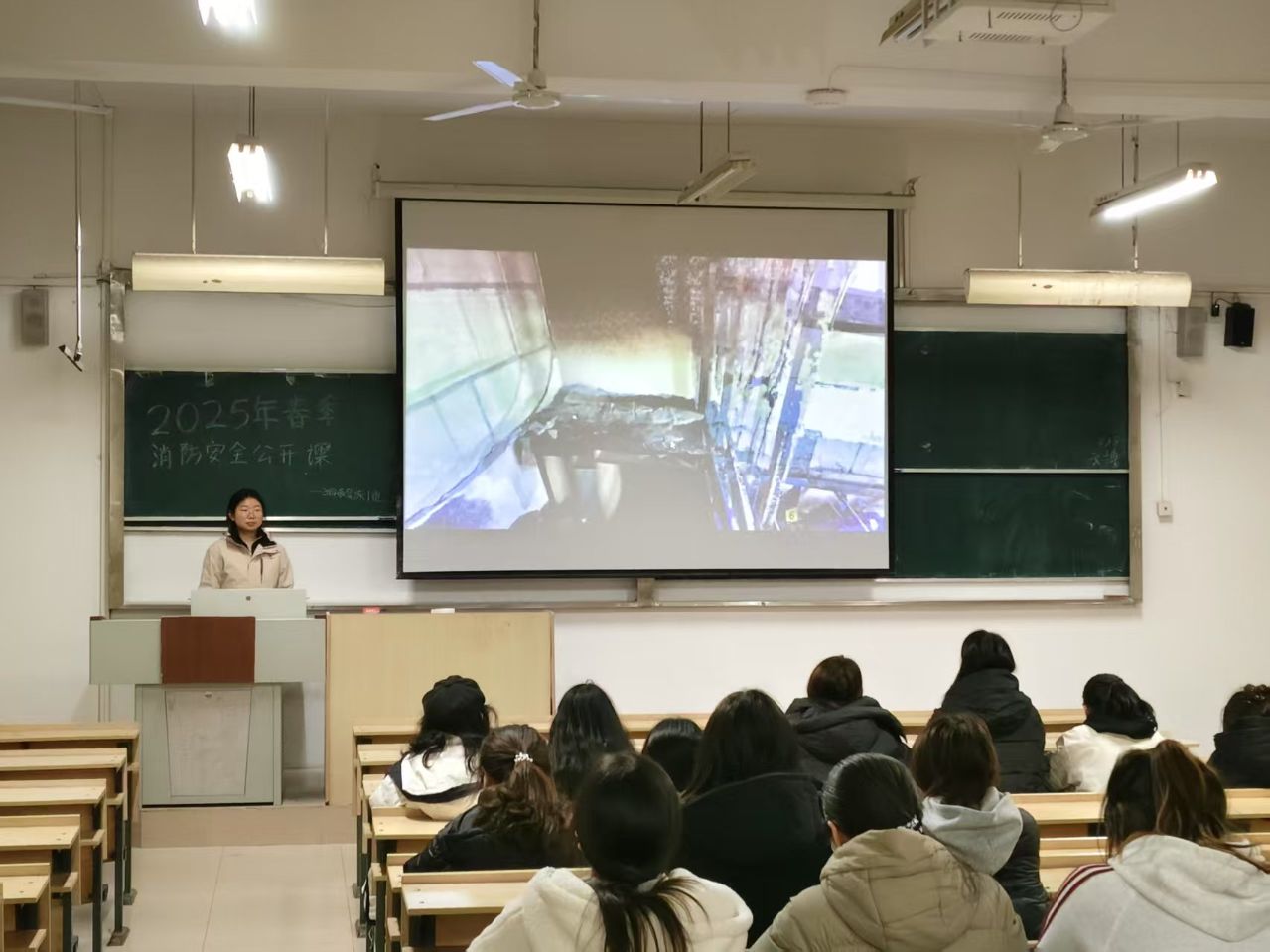 为督促落实消防安全主体责任,强化消防安全责任意识,进一步提高我院学生的消防安全意识和自防自救能力,文史学院(文化与旅游学院)于3月18日组织全体学生集中收看“2025年春季全国高校消防安全公开课”,通过云端+实践双轨模式筑牢安全防线。