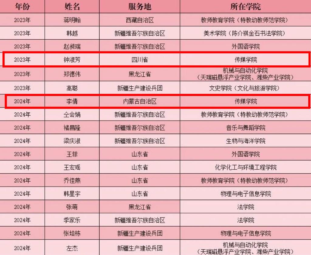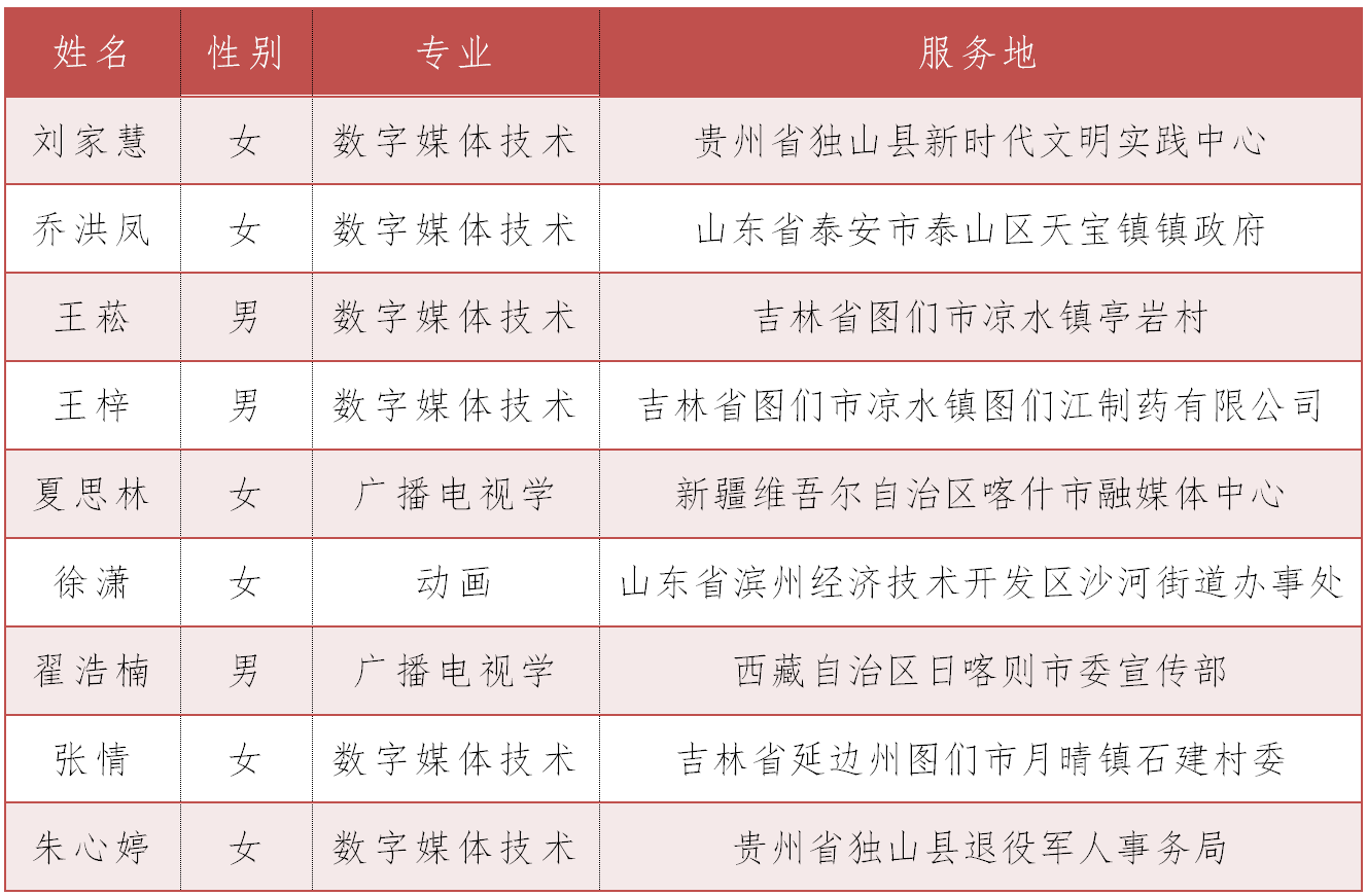 传媒学院院2025届毕业生有9位同学也加入了西部计划中,他们分别是: