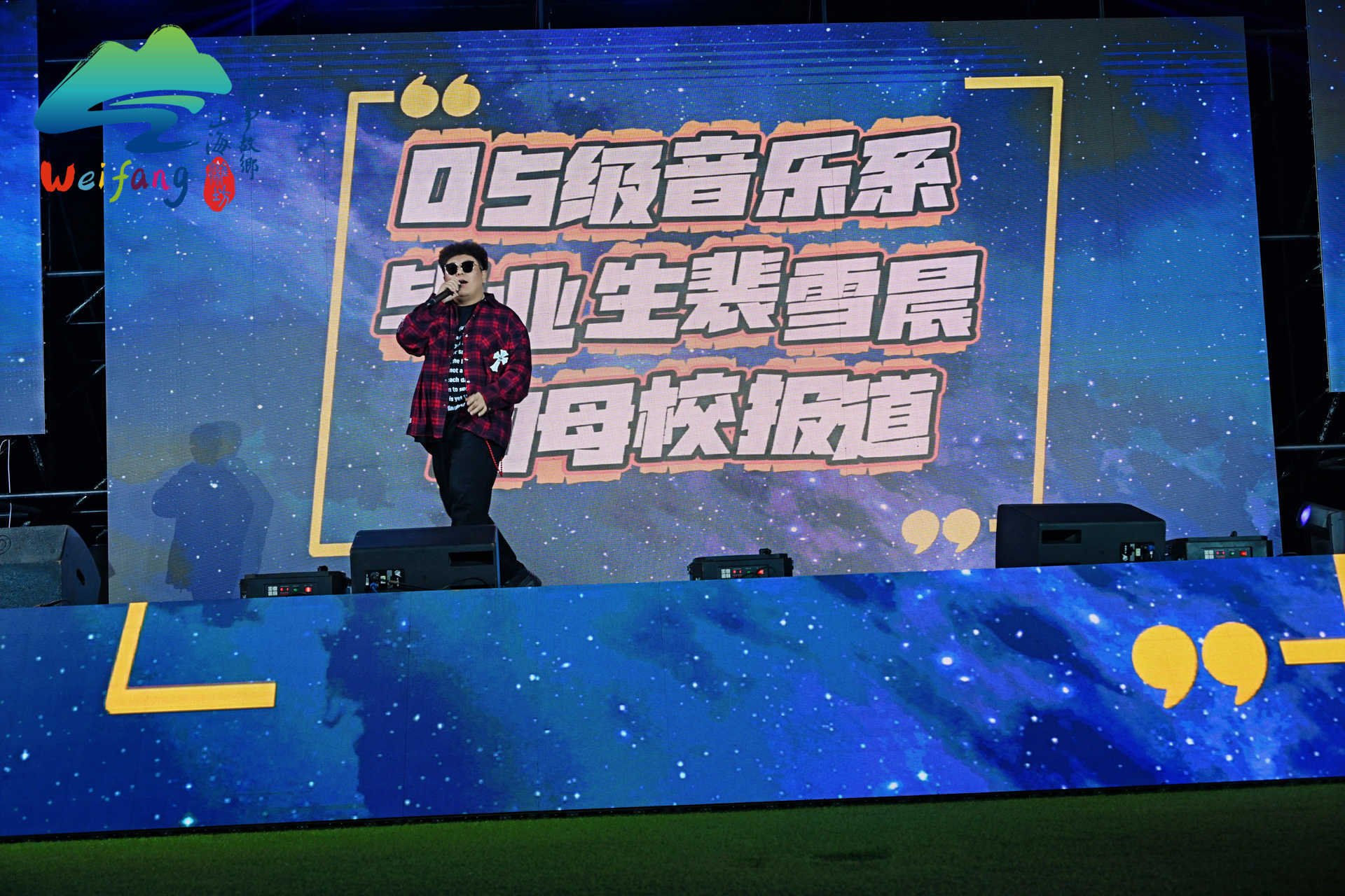 以星空为幕,以草坪为席。夜晚,迎新专场音乐会激情开唱,歌舞飞扬、音浪碰撞,《我的未来不是梦》《特别的爱给特别的你》等耳熟能详的歌曲引发全场大合唱,大学生街舞协会《震撼》舞蹈、大学生模特协会《漫步生姿》引爆全场,晚会在慷慨激昂的《红旗飘飘》师生合唱中落下帷幕,潍院师生以歌声表白祖国,祝福伟大祖国生日快乐。