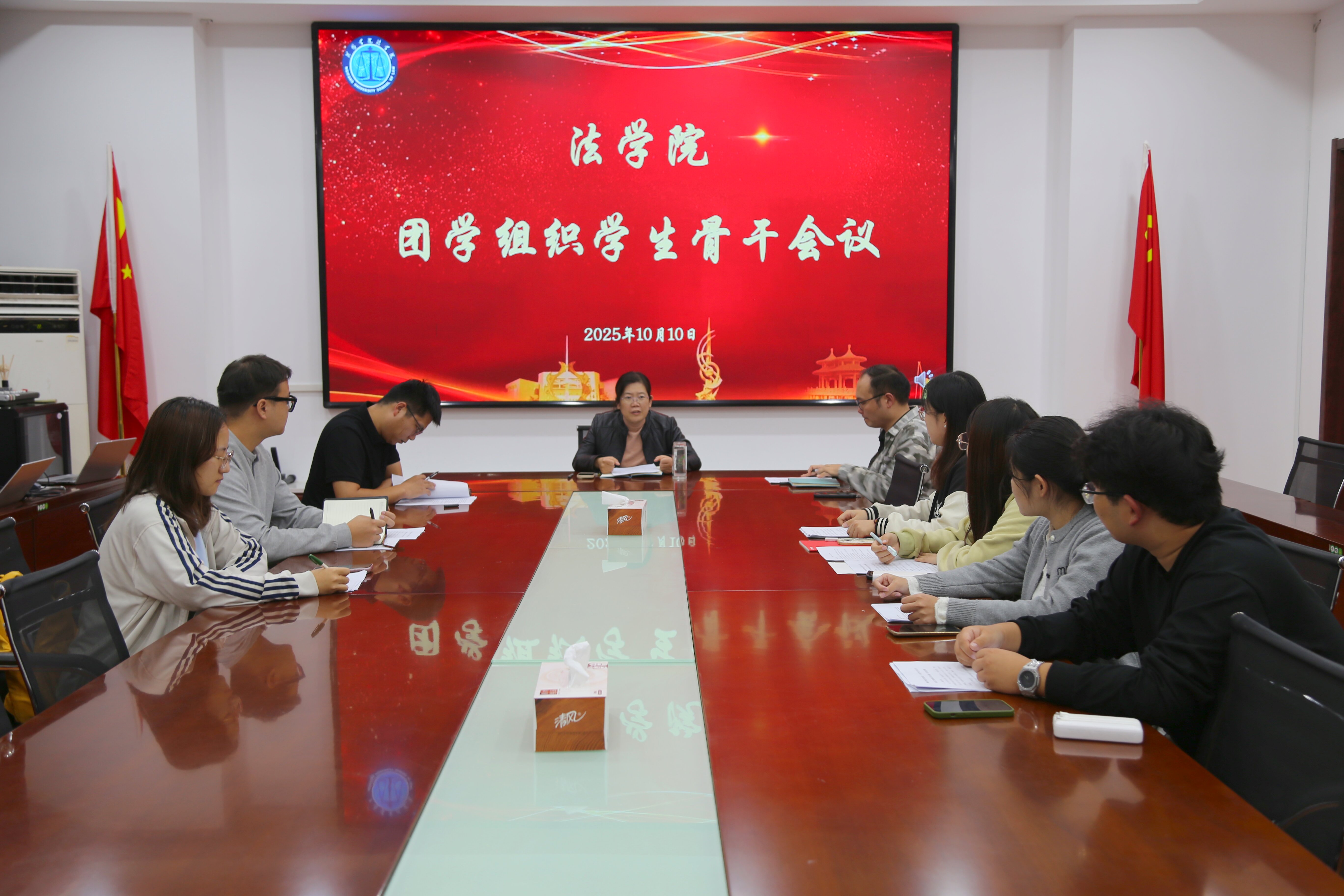 为锚定团学工作方向、强化部门协同效能、全面提升工作质效,10月10日,法学院于8314会议室召开团学组织学生骨干会议。学院党委副书记王秀慧出席会议并作指导讲话,全体辅导员参会。