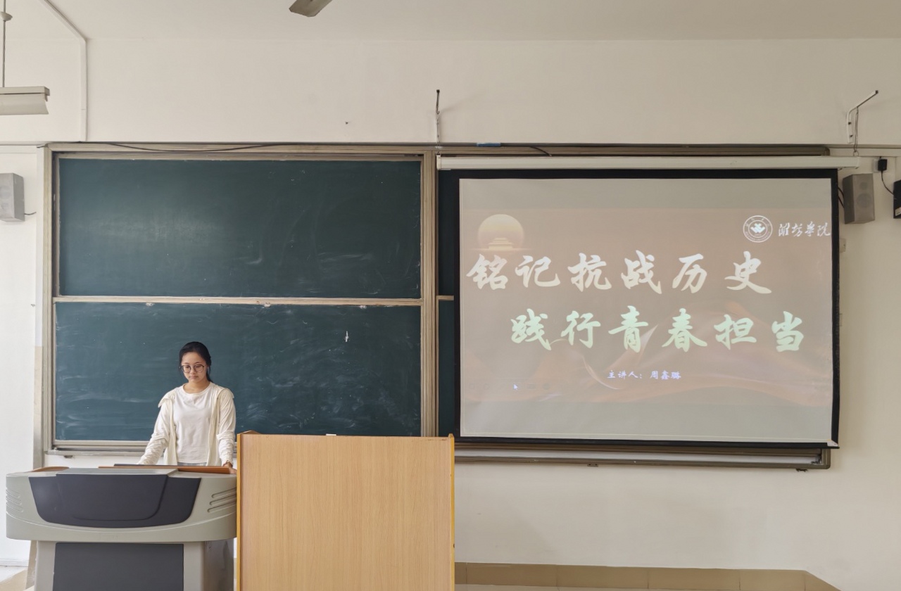 活动伊始,各团支部以庄严肃穆的“沉浸式学习”带领团员青年重回烽火连天的抗战年代。通过“史实回顾+影像学习”相结合的模式,组织团员青年深入学习了中华民族抗日战争波澜壮阔的伟大历程。从“九一八”事变到卢沟桥枪声,从平型关大捷到百团大战,从淞沪会战无数将士的浴血坚守到敌后根据地军民的顽强斗争,一个个鲜活的历史事件、一段段悲壮的英雄故事,通过详实的史料记载和珍贵的历史影像,生动再现了全体中华儿女为国家生存而战、为民族复兴而战、为人类正义而战的雄浑史诗。特别是学习了杨靖宇、赵尚志、左权、戴安澜等抗日英烈以及狼牙山五壮士、八百壮士等英雄群体的感天动地的事迹,让同学们深刻感受到天下兴亡、匹夫有责的爱国情怀,视死如归、宁死不屈的民族气节,不畏强暴、血战到底的英雄气概,百折不挠、坚忍不拔的必胜信念。这种深入的历史教育,使同学们深刻认识到抗日战争胜利的伟大意义以及今日和平的来之不易,推动伟大的抗战精神在团员青年心中深深扎根。