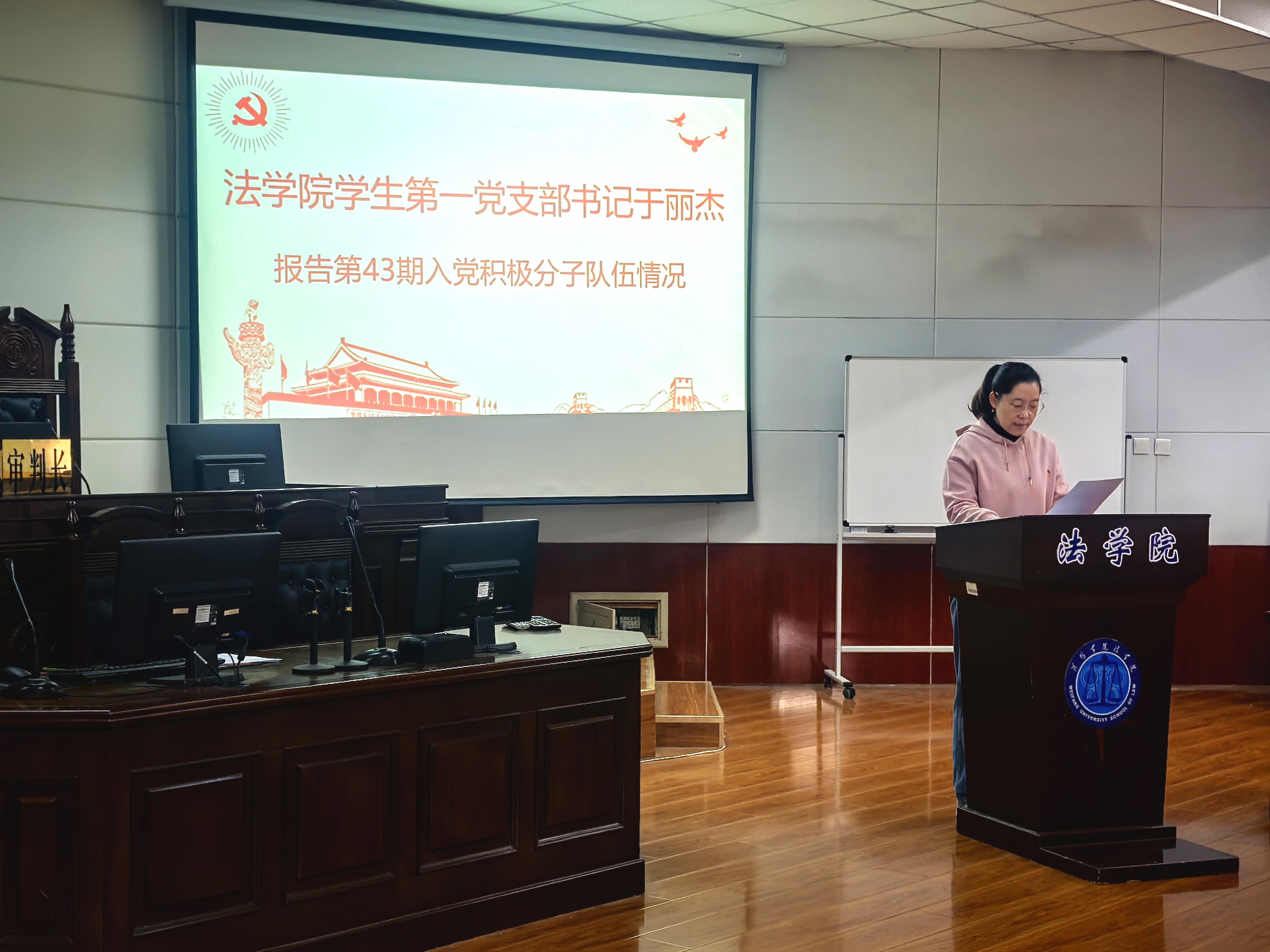 10月23日,学院在8321模拟法庭举行第43期入党积极分子培训班开班仪式。学院党委书记刘德才、党委副书记王秀慧出席会议,全体辅导员、学生党员以及第43期全体入党积极分子参会。