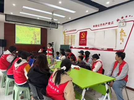 文化讲解环节,志愿者借助生动的PPT图文与民间传说,向孩子们讲述了重阳节的渊源与习俗。从“双九相叠,寓意长久”的由来到“桓景登高避灾”的传说,再到赏菊、品糕、饮菊花茶等传统习俗,讲解内容深入浅出,引人入胜。互动环节中,孩子们踊跃参与,齐声诵读王维的《九月九日忆山东兄弟》。在琅琅书声中,他们不仅加深了对重阳文化的理解,更在心中悄然种下了敬老爱亲的种子。