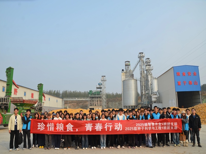 为引导学生深刻理解专业使命,增强节粮爱粮意识,10月26日,现代农学院2025级智慧农业1班团支部与2025级种子科学与工程1班团支部联合组织,前往潍城区潍坊绿野农机专业合作社,成功开展了一场别开生面的“珍惜粮食,青春行动”主题团日活动。本次活动将专业认知教育与劳动教育、国情教育深度融合,让同学们在粮食生产一线上了生动而深刻的一课。