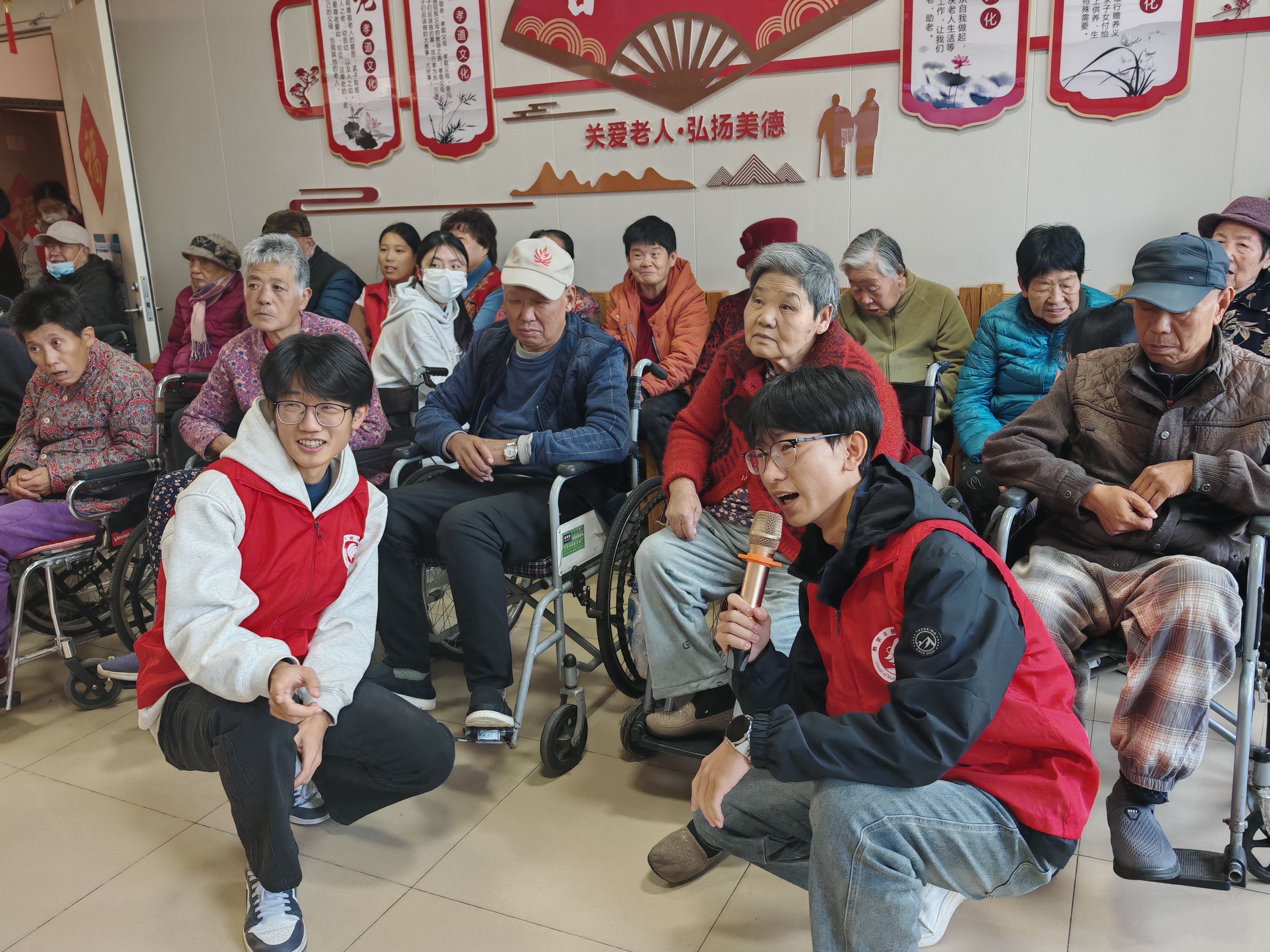 志愿者为老人们献唱《我和我的祖国》《茉莉花》等经典歌曲,熟悉的旋律唤起老人们的美好回忆,眼中闪烁着动情的光彩。同学们主动邀请老人一同演唱,岁月沉淀的嗓音与青春洋溢的和声相互交织,场面温馨感人。志愿者与老人们合影留念,将温情瞬间定格为永恒记忆,临别之际,老人们紧握同学们的双手,送上温馨祝福,这份深情厚谊深深印在每位志愿者的心中。