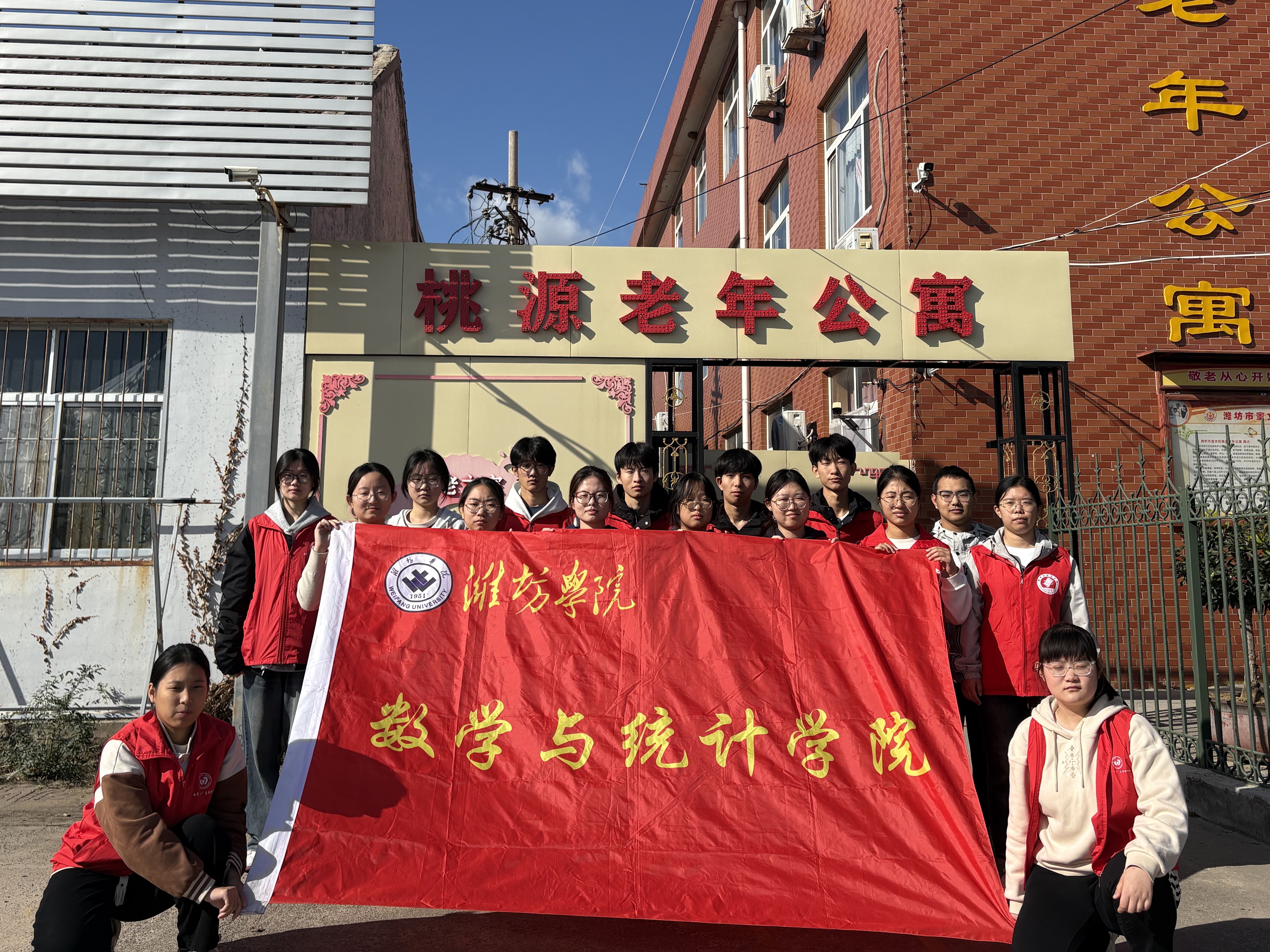 为弘扬中华民族尊老敬老的传统美德,传递社会温暖,推动“百万大学生进社区”实践活动走深走实,11月2日上午,数学与统计学院“1+1”志愿服务队走进潍坊桃源老年公寓,开展“重阳敬老行,志愿暖人心”主题活动,为老人们送去真挚的问候与温暖的陪伴。