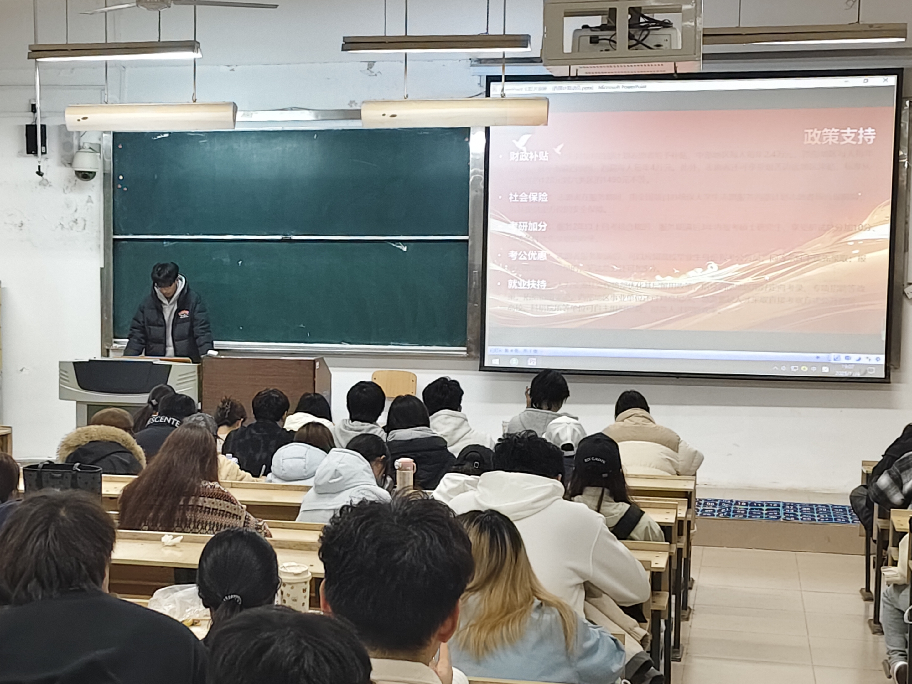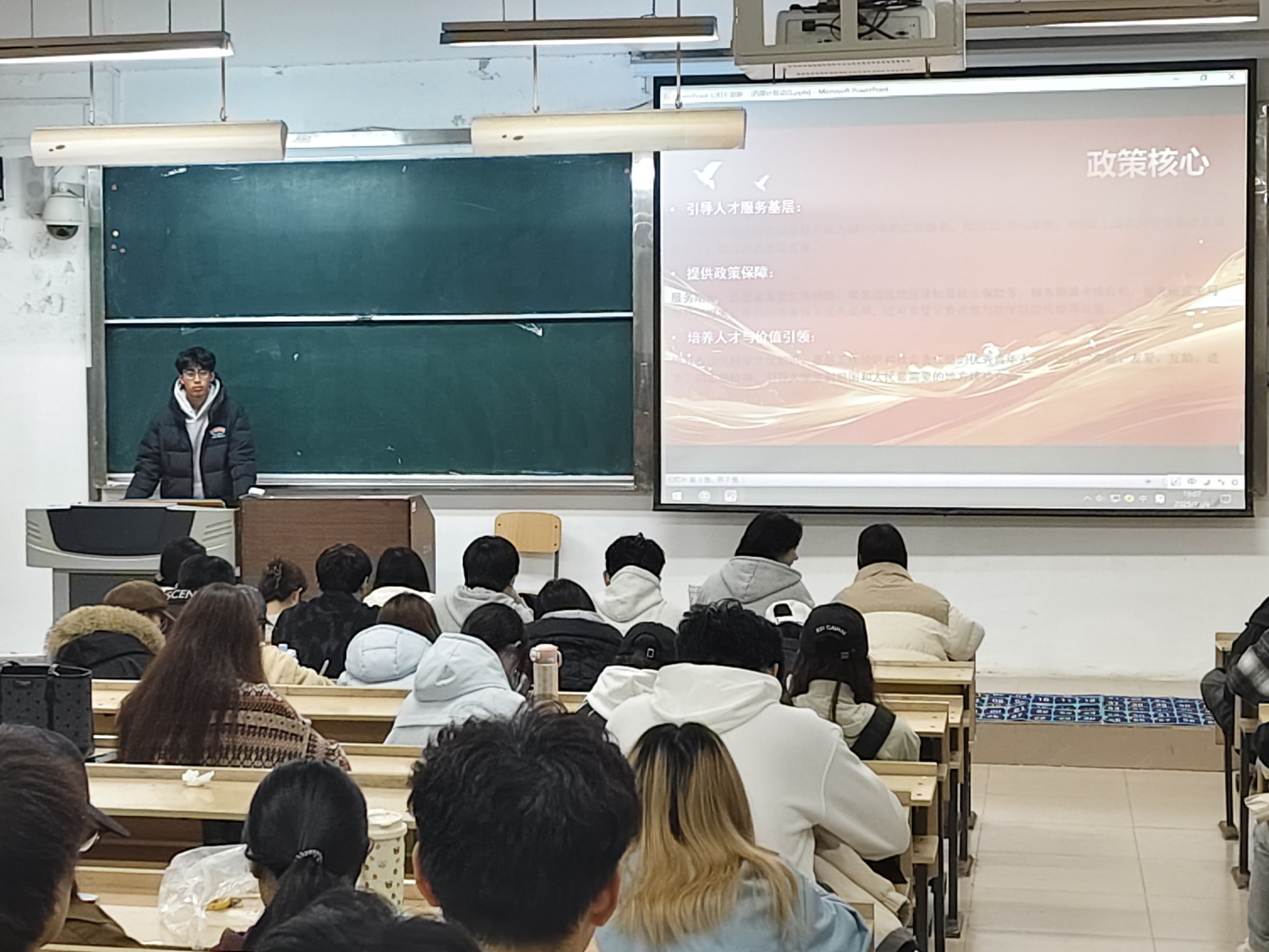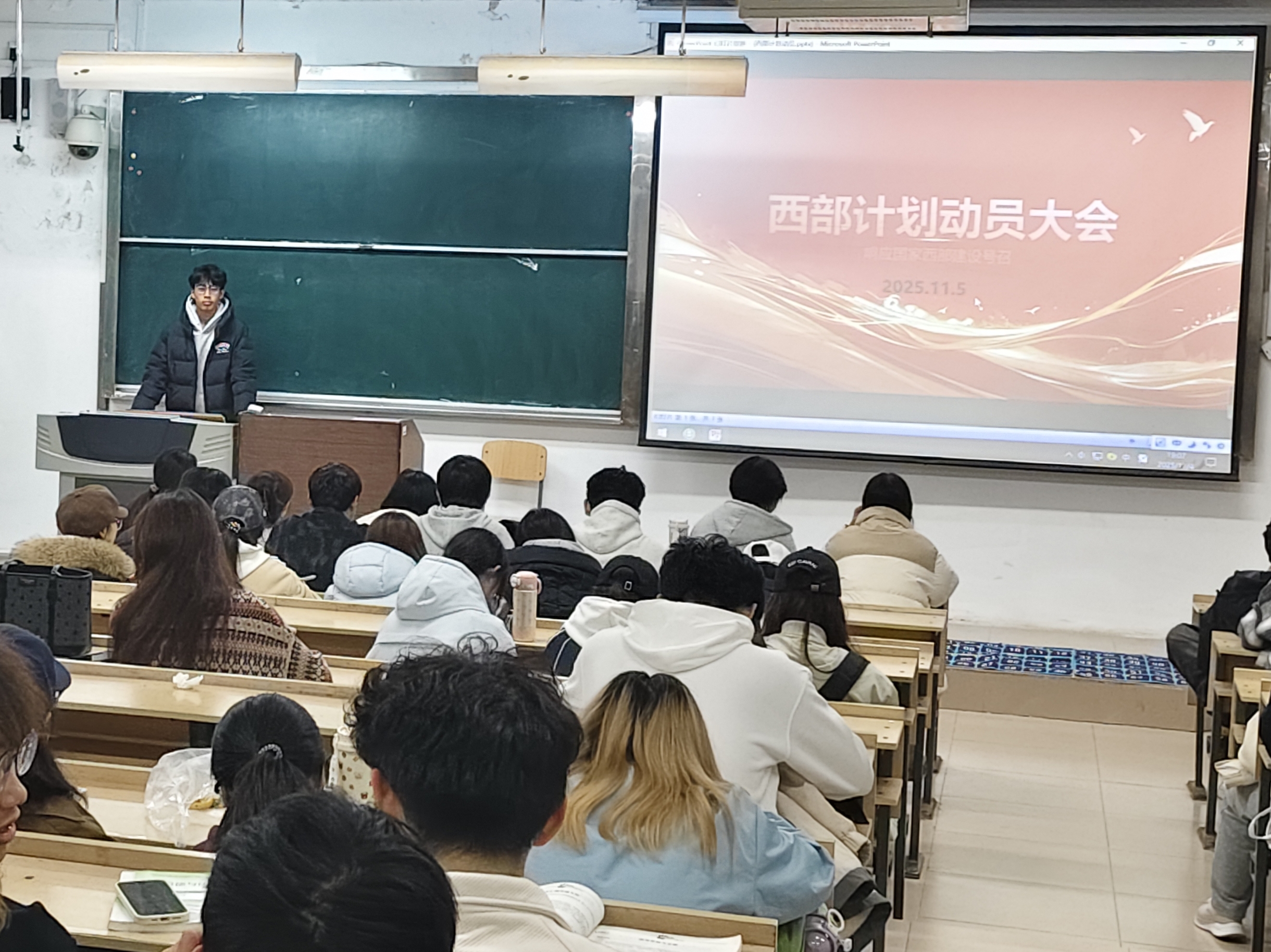 为响应国家西部建设号召、增强大学生国家意识与责任感,潍坊学院经济管理学院于11月5日在致远楼512教室开展“西部计划”动员大会,活动由学院团学组织社会实践部负责人贾昊喆主讲,2022级、2023级部分学生共同参与。