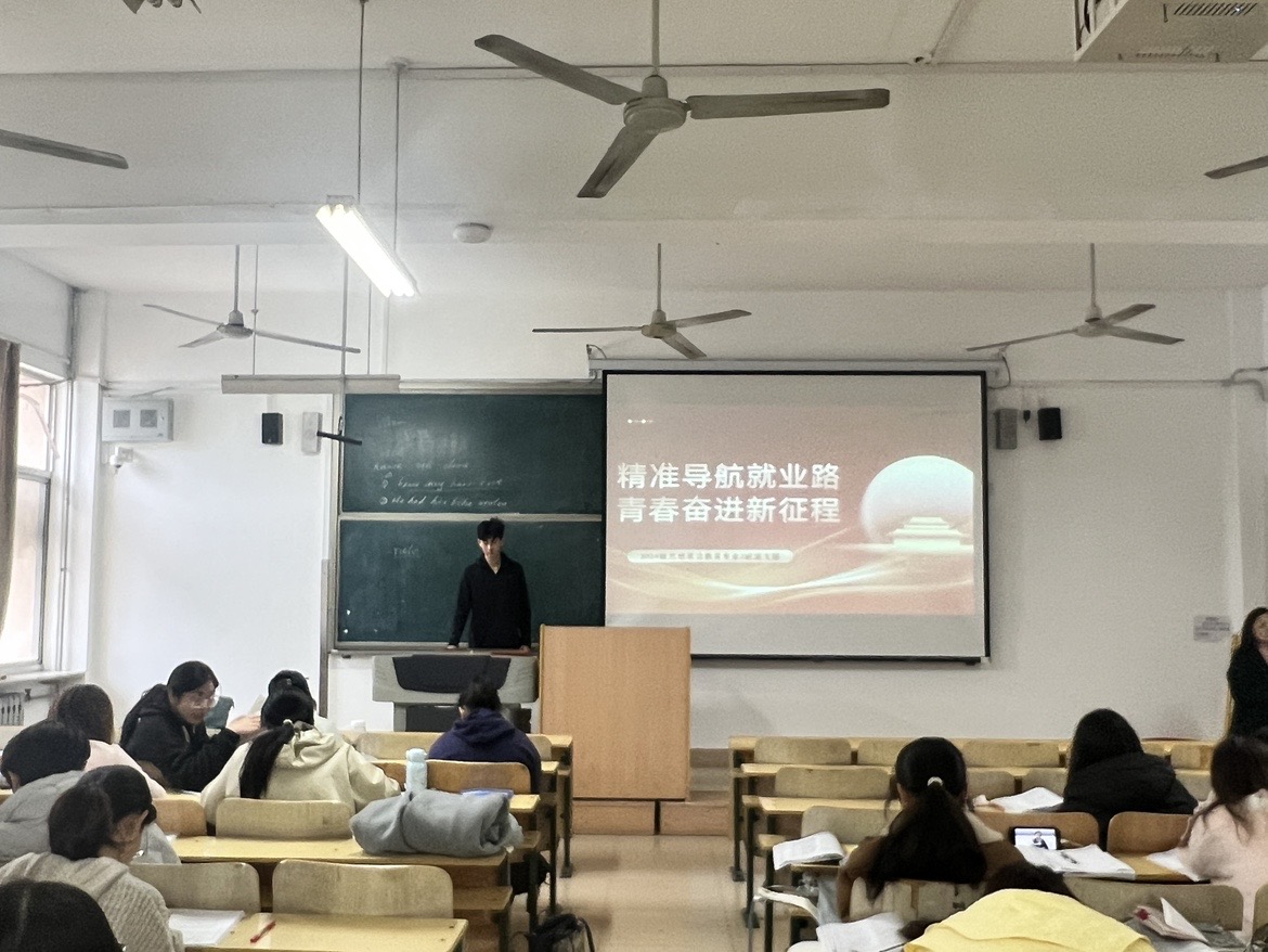 此外,各班级团支部还依托就业指导平台,构建起“线上学习+线下研讨”的立体化就业指导体系。针对基层就业补贴、“国聘行动”等与学生息息相关的政策进行详细解读,让学生在互动实践中深化对职业规划的理解。