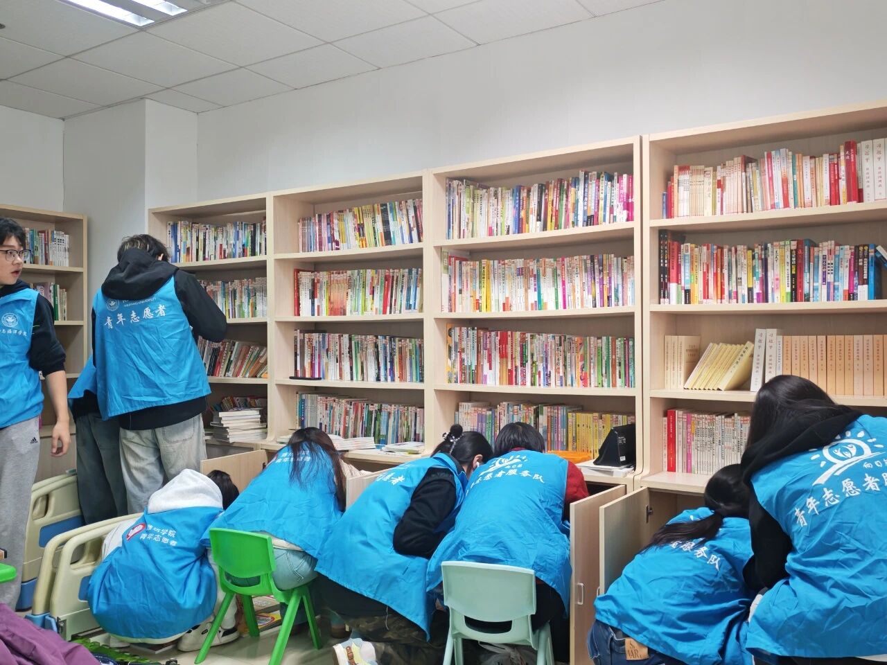 下午两点,志愿者们准时抵达玉清社区活动中心图书室。经社区工作人员简要培训与分工部署后,大家迅速投入到紧张有序的图书整理工作中。面对品类丰富、数量繁多的书籍,志愿者们分工明确、协作高效,按照文学、社科、科普、少儿等标准分类体系细致分拣,将整理完毕的图书规范上架,确保排列规整、标签醒目。
