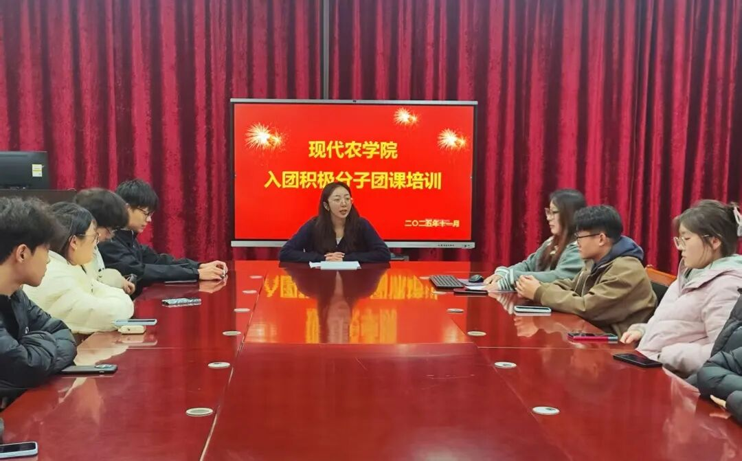 为加强团员发展对象的思想引领,提升其对共青团的认识与理解,现代农学院于11月4日下午在8501会议室举办团课培训活动。本次团课由现代农学院团委副书记李虹主讲,团学组织部负责人李艳艳、张剑分别作专题发言。2025年下半年全体团员发展对象积极参与,共同接受了一次系统的思想教育和精神洗礼