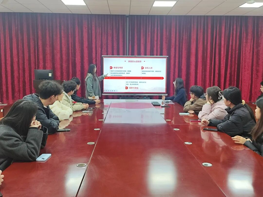 随后,张剑围绕共青团的光辉历程进行讲解。他以历史脉络为主线,系统回顾了共青团自成立以来在不同历史阶段所承担的重要使命与发挥的积极作用,增强了发展对象对团组织的时代认同与历史敬意。此外,他还对团徽、团旗和团歌的象征意义与使用规范作了细致解读。