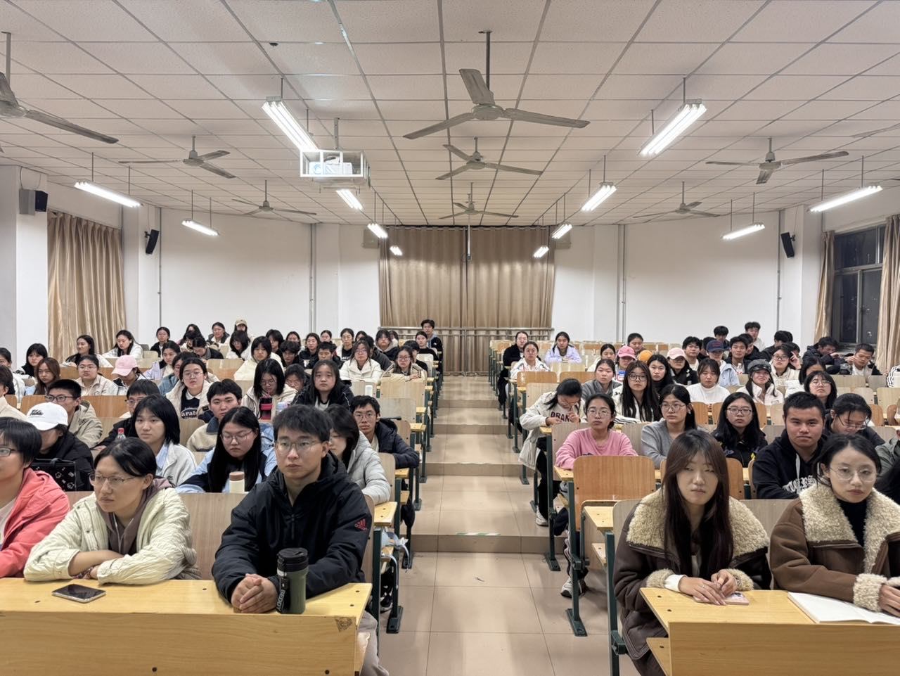 在实践路径分享环节,刘雪乾结合社区实际需求,细致拆解了大学生参与服务的具体方向——从文明创建、敬老扶幼等志愿服务,到社区治理痛点、民生需求等主题的基层调研,为同学们提供了清晰可落地的行动指南。最后,他向全体法科学子发出动员倡议:“新时代青年当响应国家号召,以专业所长赋能基层治理,在社区一线的实践中积累经验、践行责任,将个人成长融入国家发展与社会进步的洪流。”整场分享逻辑清晰、内涵丰富,成功将“百万大学生进社区”从政策概念转化为青年可参与、能成长的具体行动,激发了同学们投身基层实践的热情。