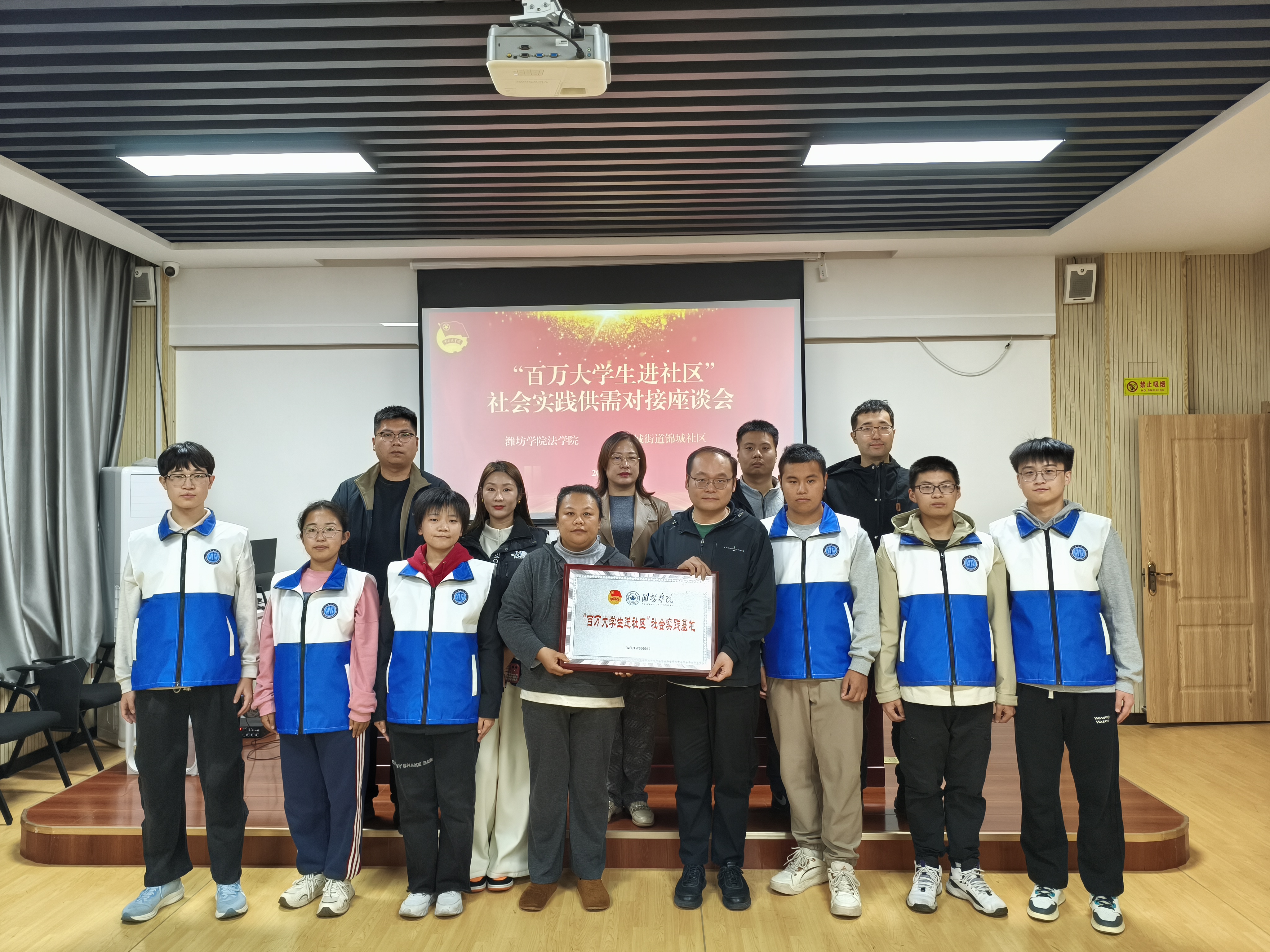 随后,刘雪乾与锦城社区党委书记闫成玉共同为“‘百万大学生进社区’社会实践基地”揭牌,标志着双方合作正式启动。仪式现场,社区负责人还发布了普法宣传、老年陪护等多项实践需求清单,法学院师生代表结合专业特长现场响应,双方精准对接并达成合作,为后续的实践活动奠定了坚实的基础。