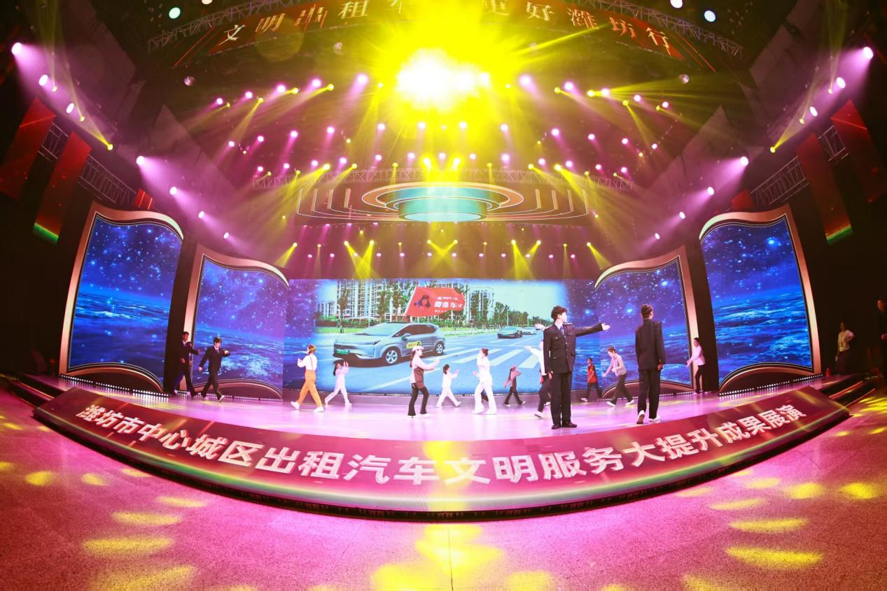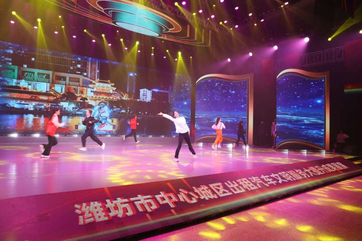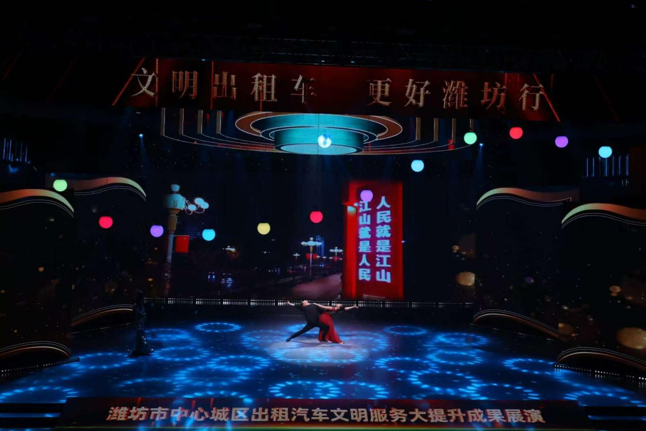 展演以文明服务、拾金不昧、见义勇为、热心公益、宣传潍坊五大篇章为主线,通过宣讲分享、情景演绎等多元形式,生动呈现了潍坊出租车司机群体的精神风貌。展演现场,音乐与舞蹈学院师生带来的节目成为串联“文明服务”篇章的亮眼纽带,他们共参演了开场舞《无名的人》、歌舞《师傅请歇歇》《向明天出发》等三个节目。学子们以刚柔并济的肢体语言和激昂有力的歌声,将出租车司机早出晚归、默默守护城市出行的日常具象化,深情诉说着对出租车司机辛勤付出的感恩与关怀,以及对平凡劳动者的敬意,让现场观众深切感受到城市守护者背后的温暖与力量,也展现出租车行业践行文明服务、助力 “更好潍坊”建设的坚定决心。