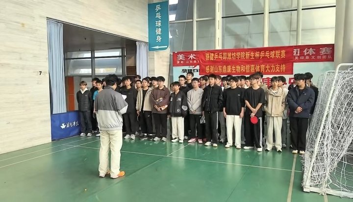 为丰富2025 级新生课余生活,传承国球精神,增强学生体质,11 月 20 日,由大学生乒乓球协会承办的 2025 年潍坊学院“新生杯”大学生乒乓球比赛在学校体育馆圆满落幕。来自全校各学院的 82 名新生选手同台竞技,挥洒青春汗水,展现了顽强拼搏的精神风貌。