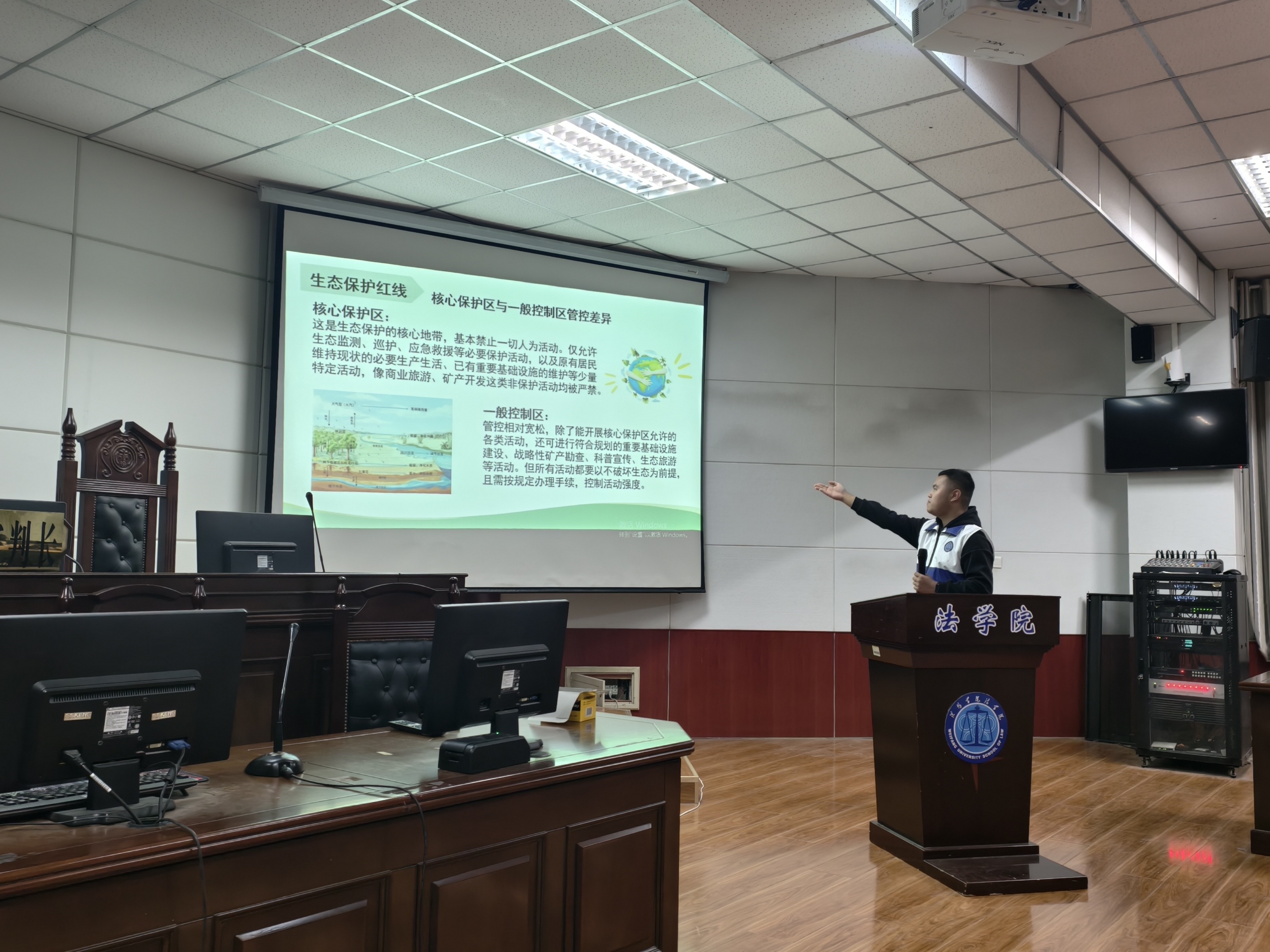 为将法学专业知识与生态保护实践深度融合,增强学子的法治实践意识与社会责任感,11月26日,潍坊学院法学院尚德志愿服务队于人合楼8321教室开展“以法护林,法学学子共担当”主题宣讲活动。此次活动作为2025国家公园大学生科普宣教志愿行动的重要组成部分,吸引了众多法学院学生积极参与其中,并在生动互动中筑牢学生生态法治理念。