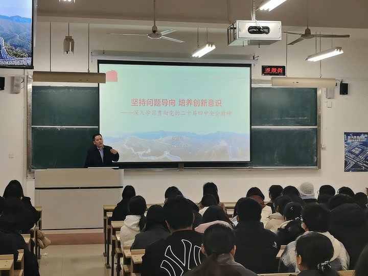 何建鹏以党的二十届四中全会精神为引领,解读“十五五”规划中“创新驱动发展”要义,强调创新是破解发展难题的“第一动力”,号召学子以问题为导向培养创新思维,将个人成长坐标锚定国家发展蓝图。