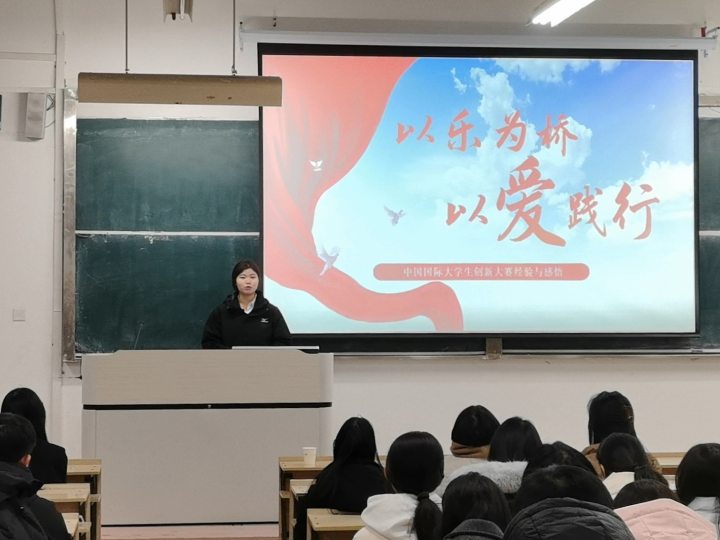 李鑫蕾则以其主创的“以乐为桥,以爱践行”音乐疗愈项目为案例,分享了项目从“不被看好”到落地生根的历程:如今该项目已与45所机构、109个社区达成合作,并斩获省级赛事银奖。她鼓励同学们善用学校资源将创意转化为实际成果,在服务社会中实现青年价值。