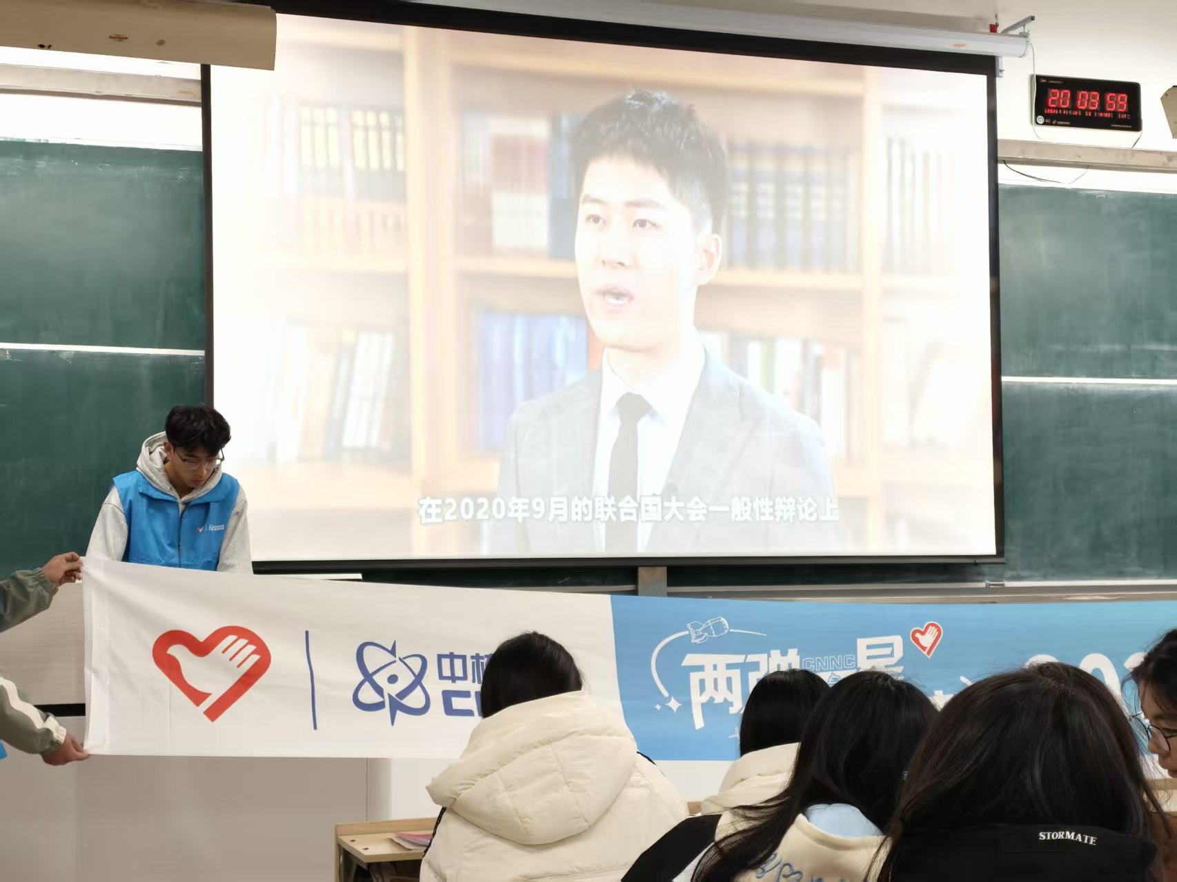 活动中播放的视频短片聚焦核能助力低碳转型的典型案例,结合情景讲述,再现“两弹一星”元勋艰苦奋斗的科研场景,将精神传承与现实需求紧密相连。同学们认真聆听,并围绕核能应用、低碳生活实践等话题与主讲人积极互动,现场气氛热烈而有序。